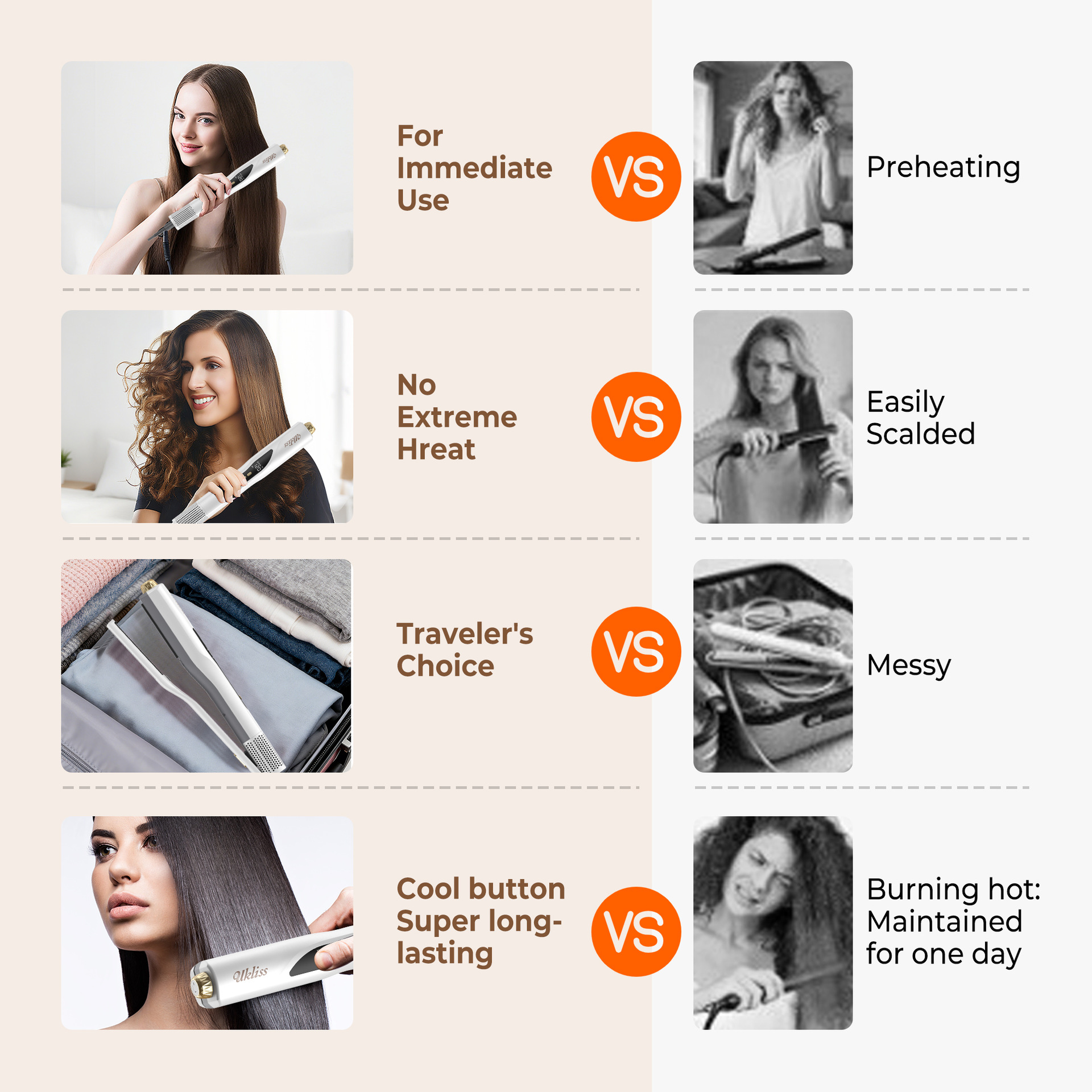 ukliss新品三合一多功能冷风高速直发器直卷吹多合一家用直发夹板