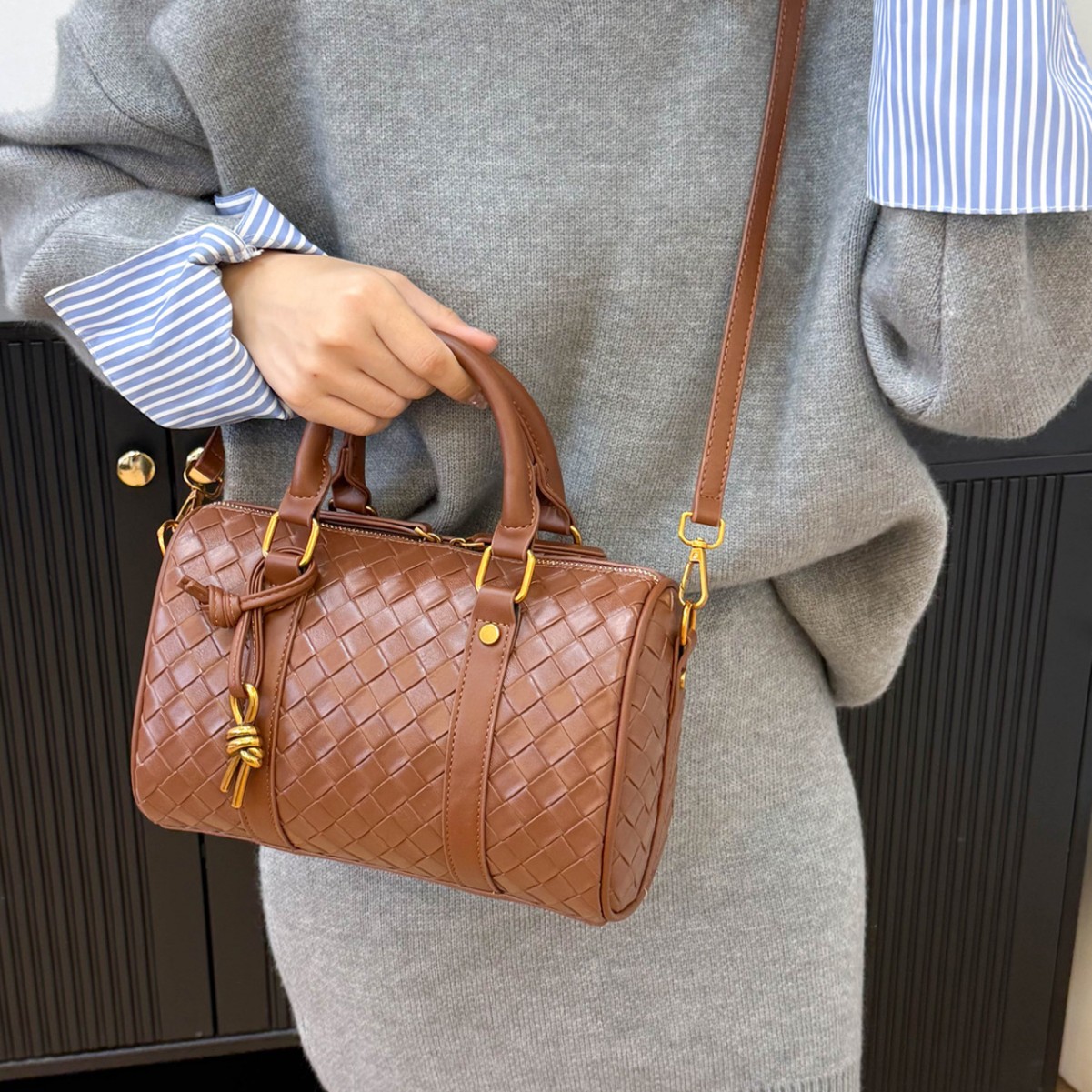 跨境批发2025欧美风大容量手工编织包新款商务通勤单肩斜挎手提包