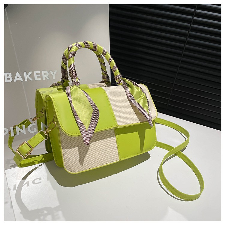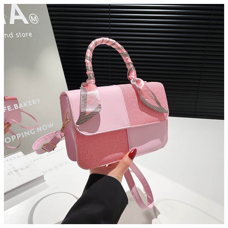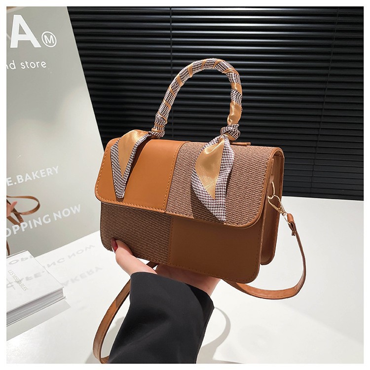 2025新款韩版简约质感大容量时尚拼接休闲丝巾斜挎手拎单肩小方包