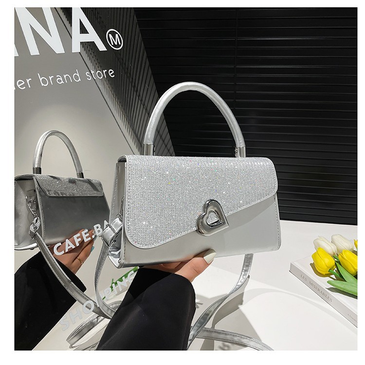跨境时尚亮片手提包女2025秋冬季新款时尚高颜值小清新气质小方包