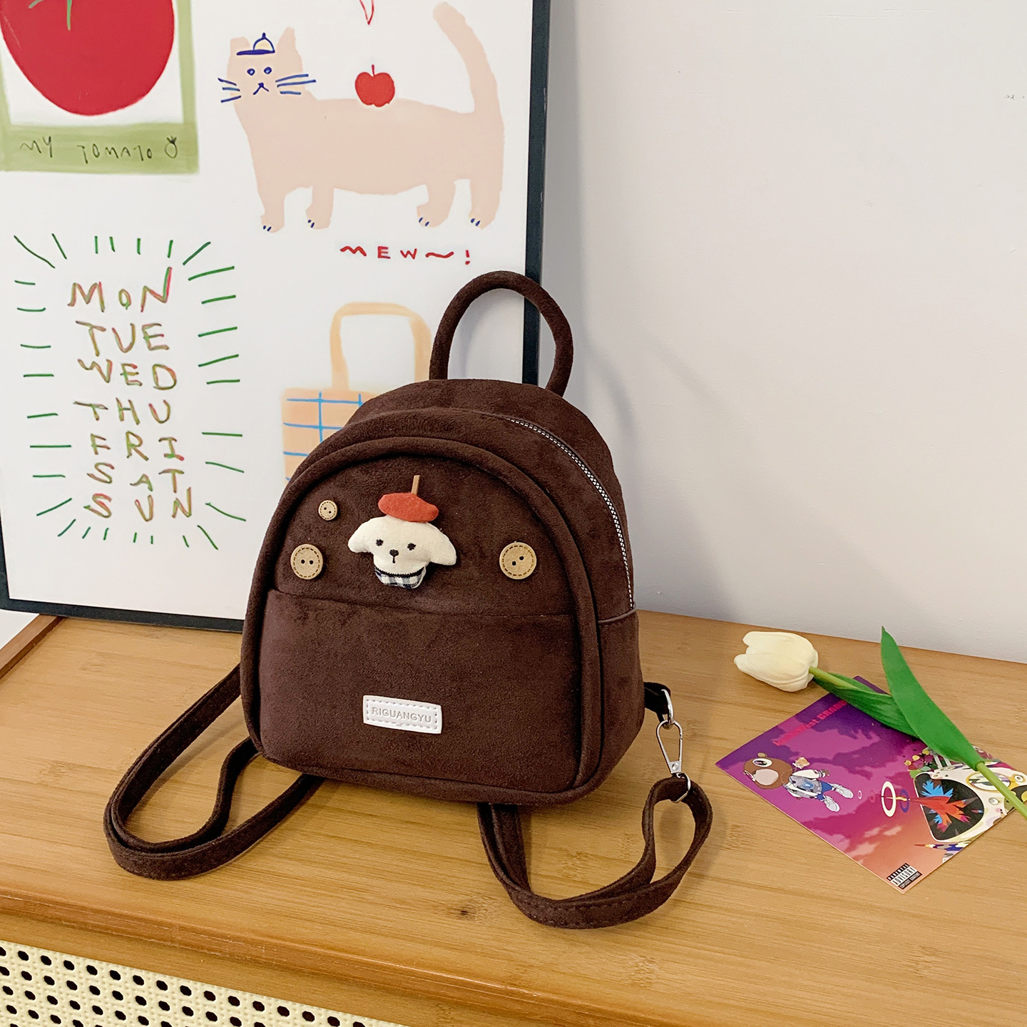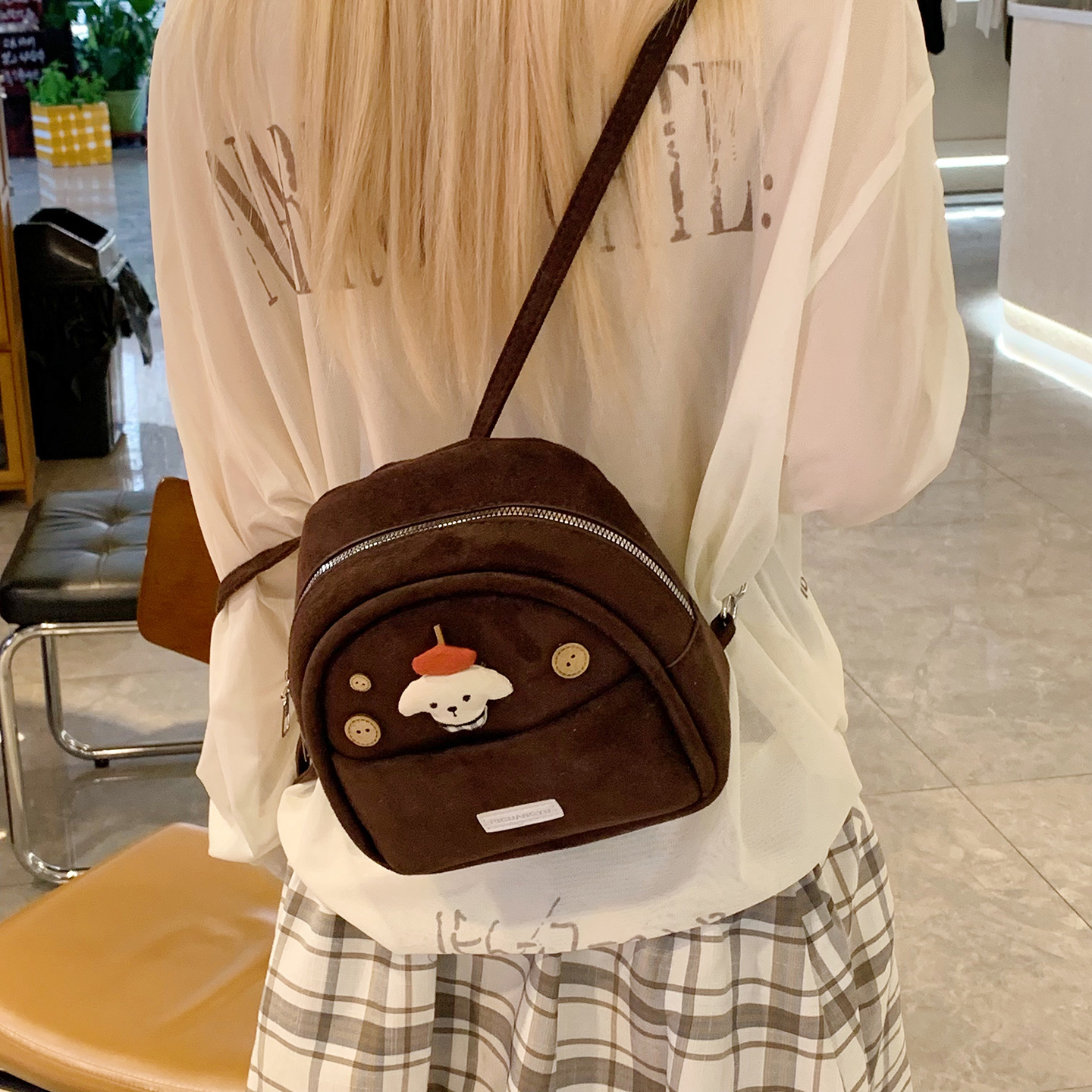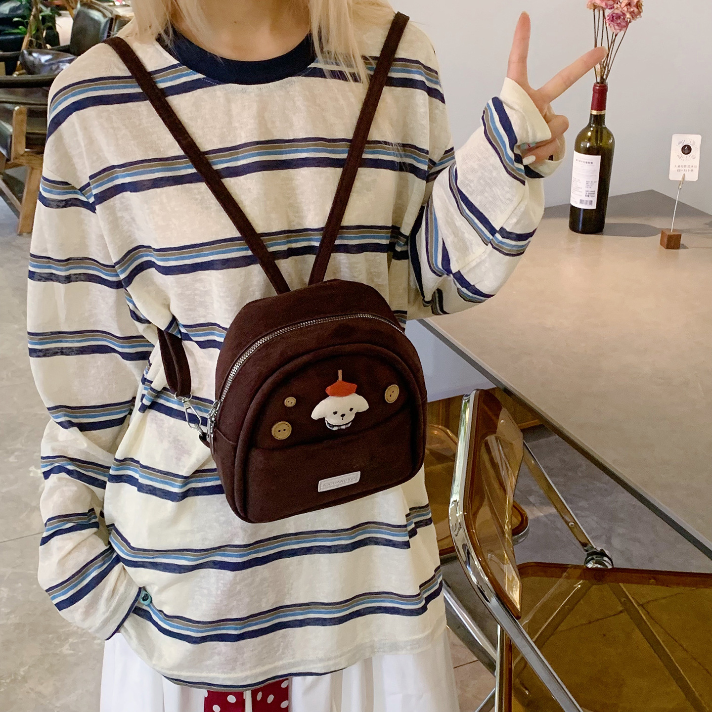 可爱公仔双肩包女2025新款时尚少女风迷你书包秋冬复古磨砂后背包