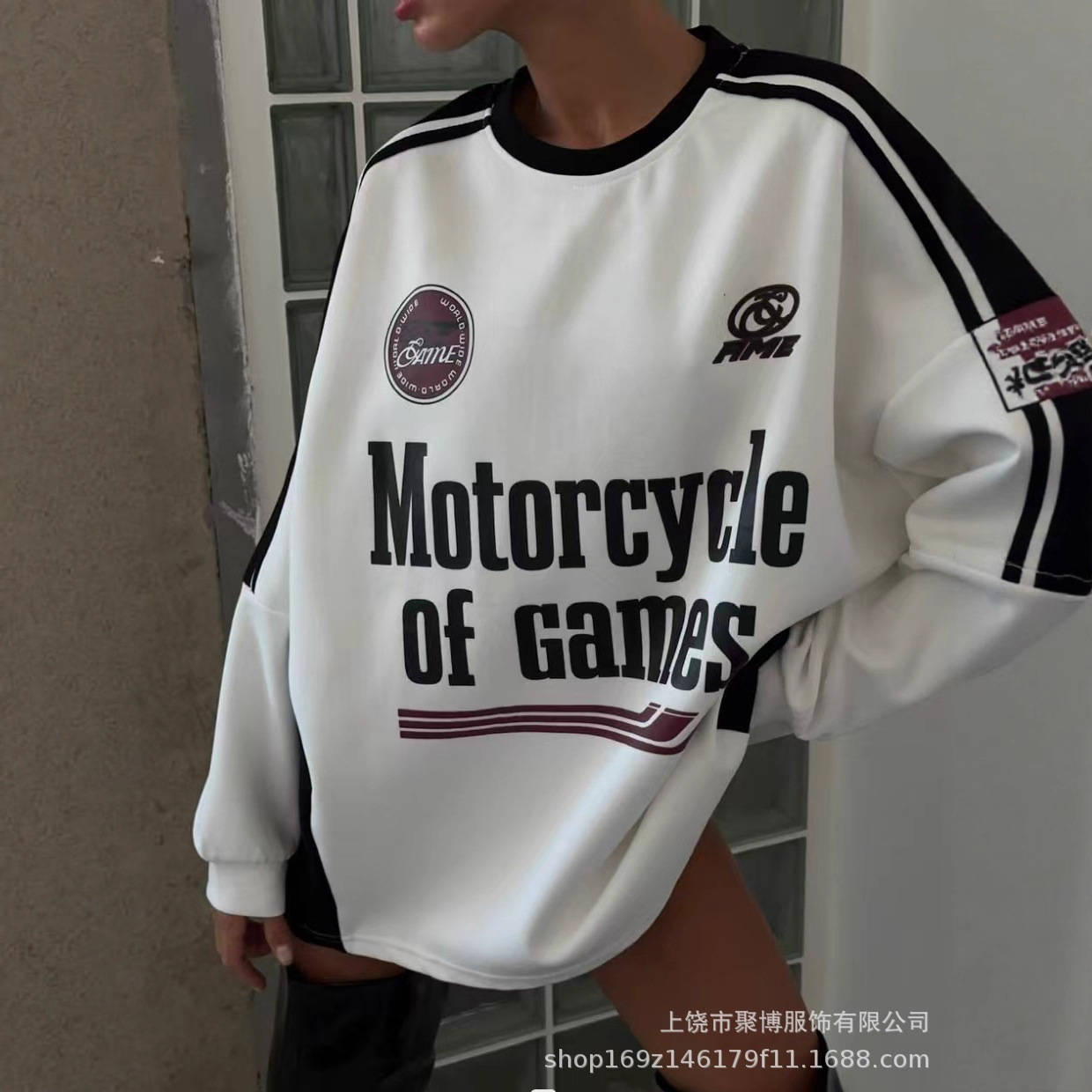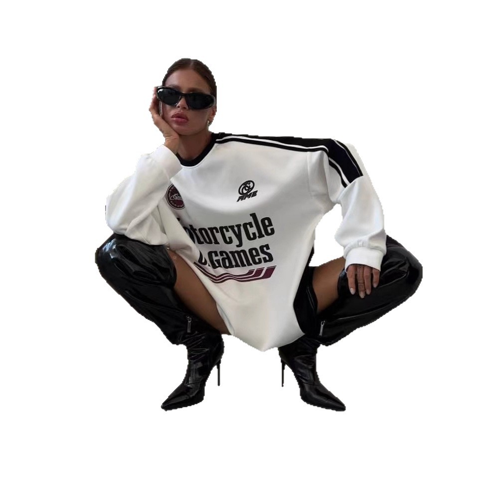 2025春秋季新款美式复古学院风尹净汉同款撞色长袖园领卫衣宽松女
