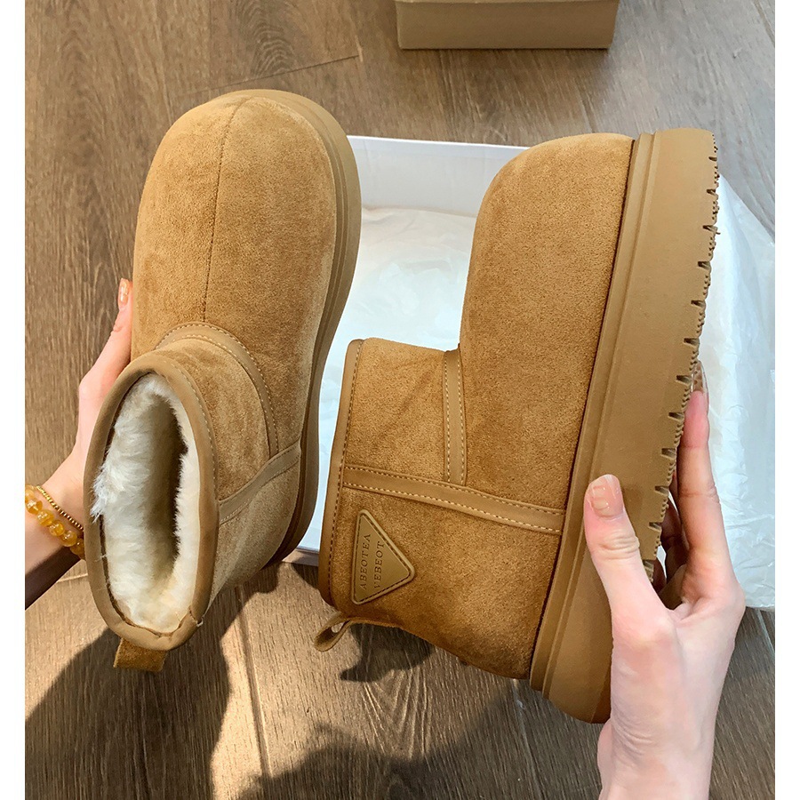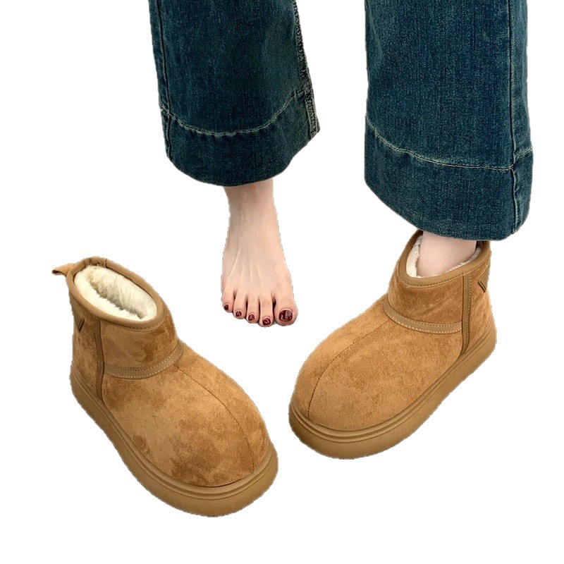 跨境2025冬季新款圆头保暖卡皮巴拉磨砂皮加厚雪地棉靴面包鞋