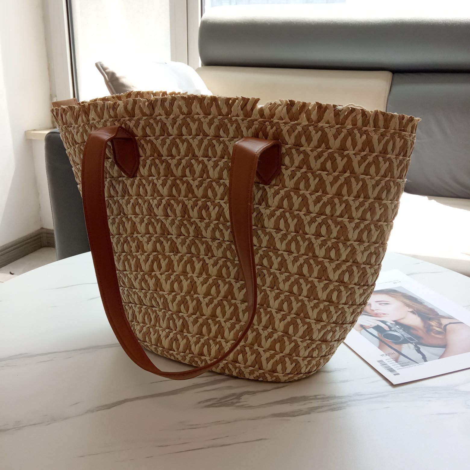 新品田园风休闲百搭草编女大容量旅游度假托特皮带包包
