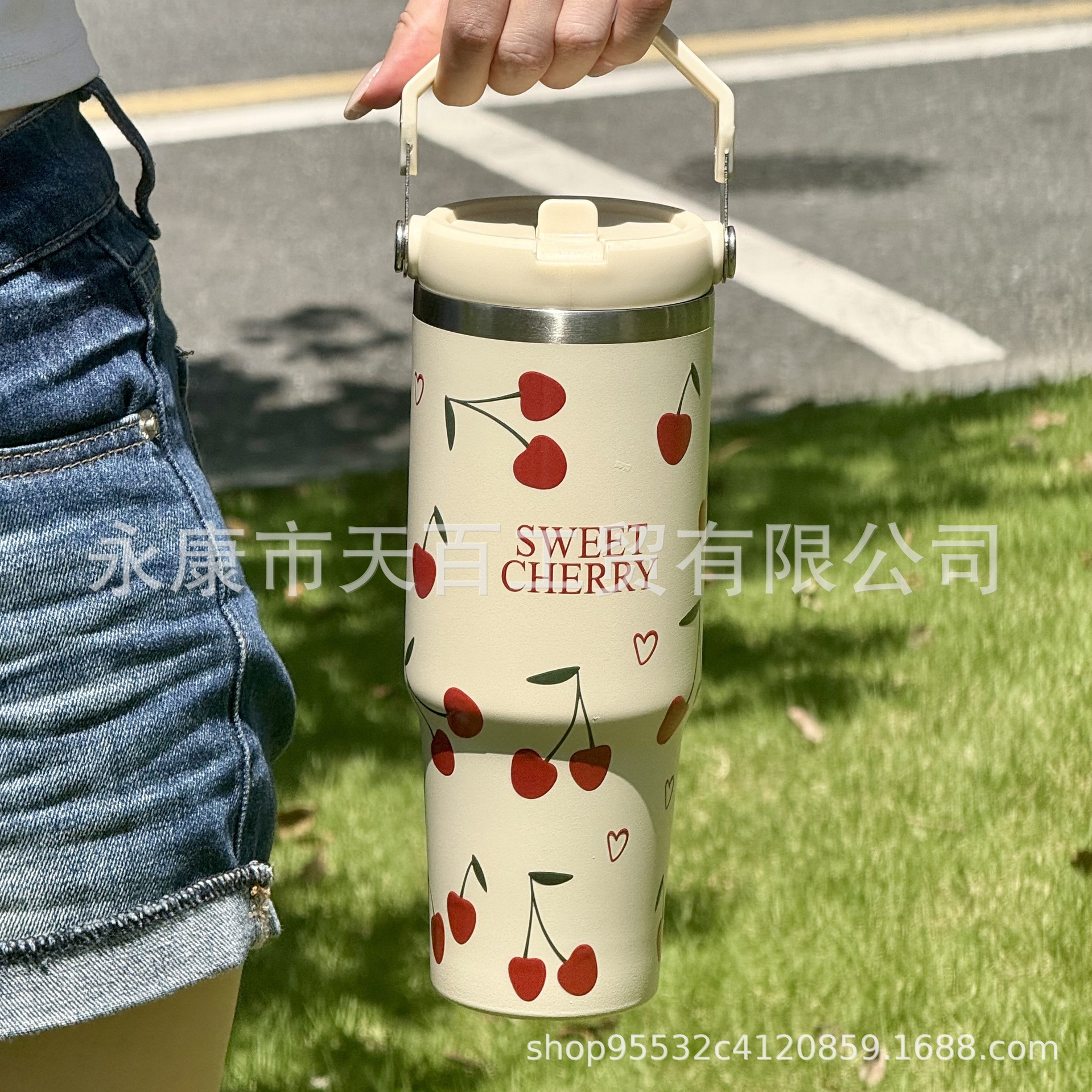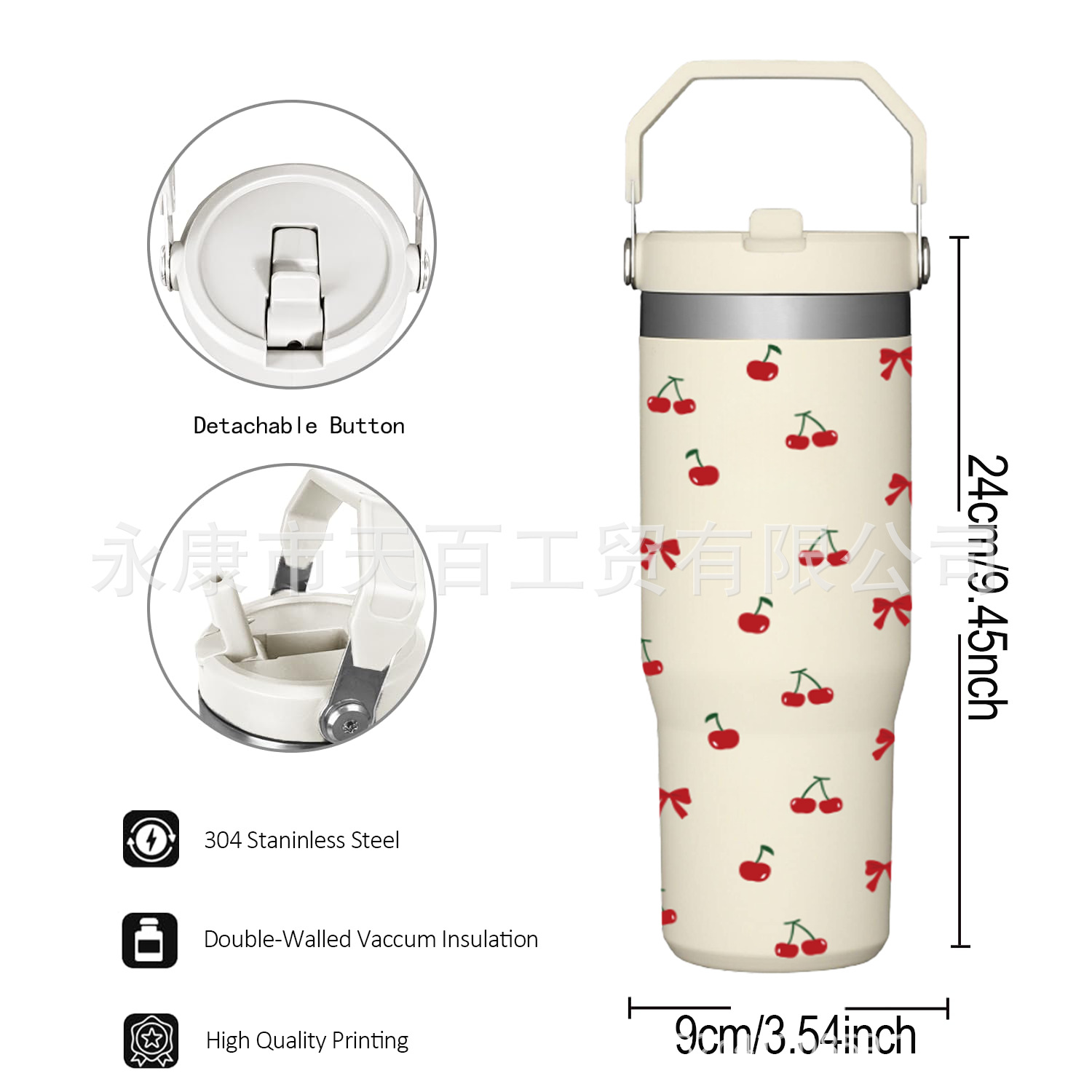 30oz冰霸杯304不锈钢保温杯三卡通印花水杯家用创意户外咖啡杯