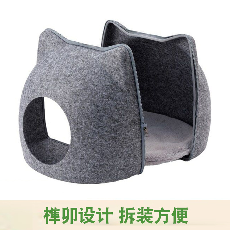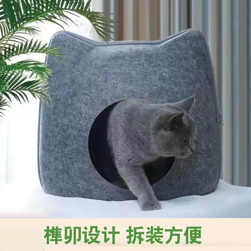 毛毡宠物猫窝半封闭式猫形透气猫床四季可用宠物窝萌宠便携舒适