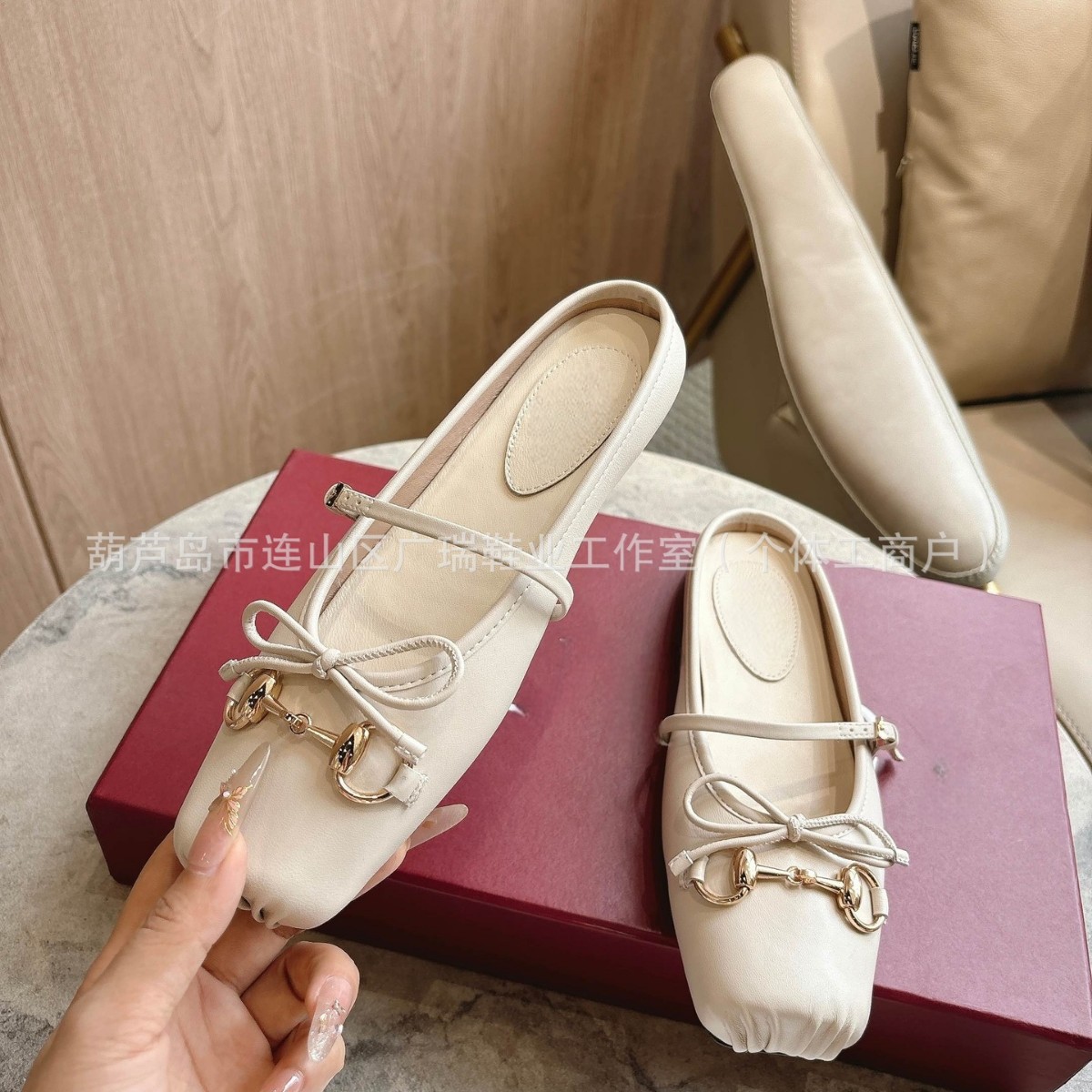 货号方头蝴蝶结一字带半托