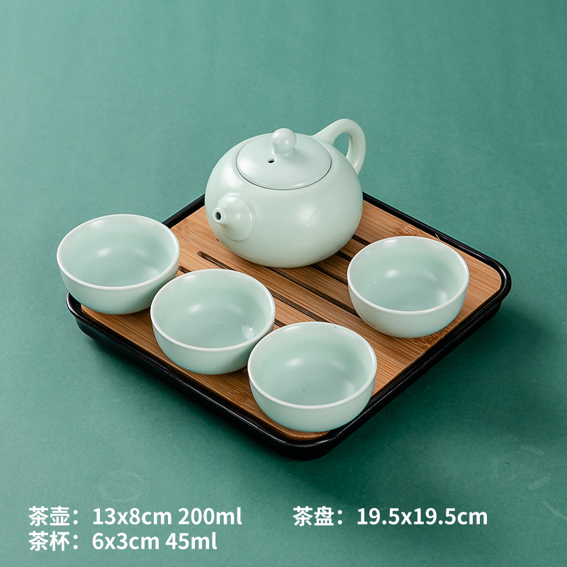 | 颜色 | 黑陶井栏壶一壶四杯 | 颜色 | 青瓷鱼一壶四杯 |