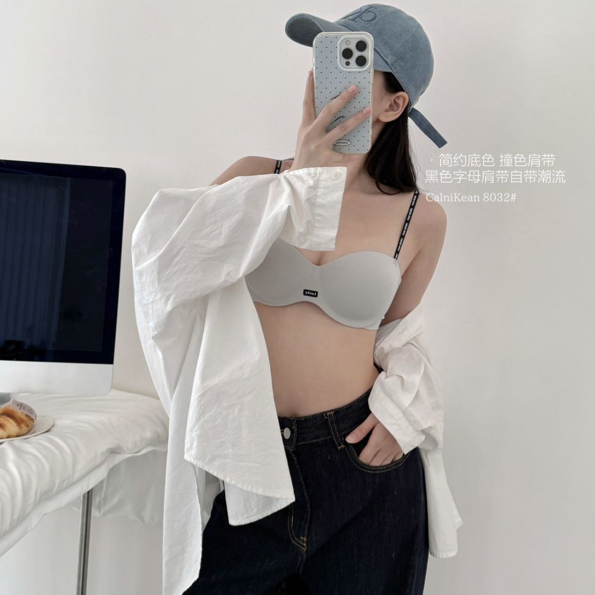 8032#小幸运圆圆杯小胸聚拢立挺Bra女简约纯色高级感撞色无㡾文胸