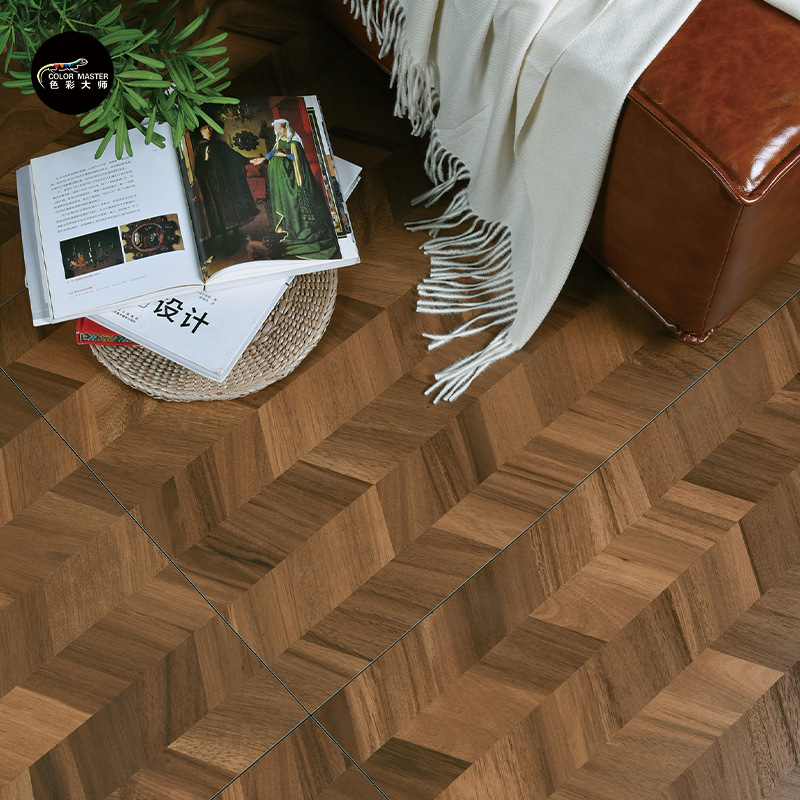 色彩大师法式中古仿木纹瓷砖600X1200鱼骨纹地面砖客厅卧室墙地砖