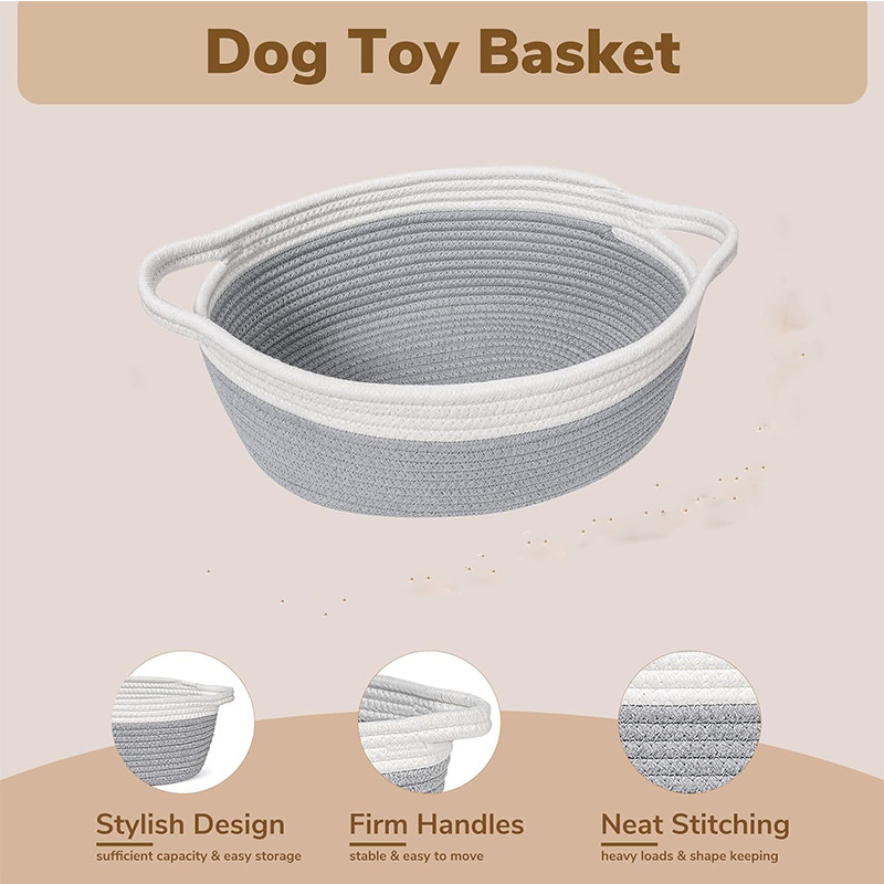 亚马逊热卖带把手棉绳玩具收纳篮手工编织储物篮置物筐编织收纳筐