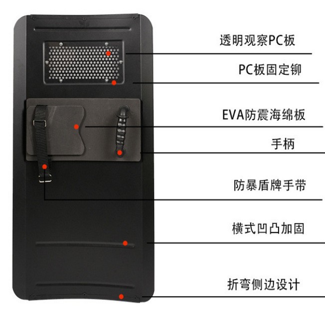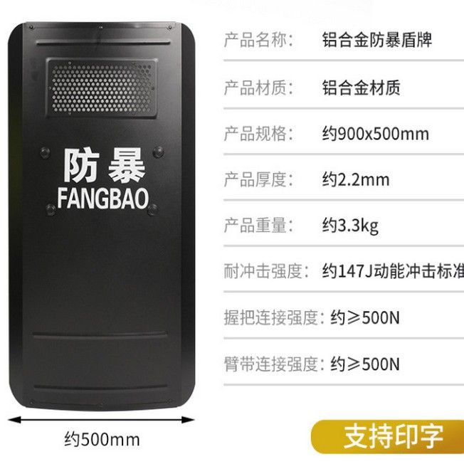 铝合金盾牌 PC防护镜手持防卫保安方盾包边防护圆盾牌铝合金盾牌