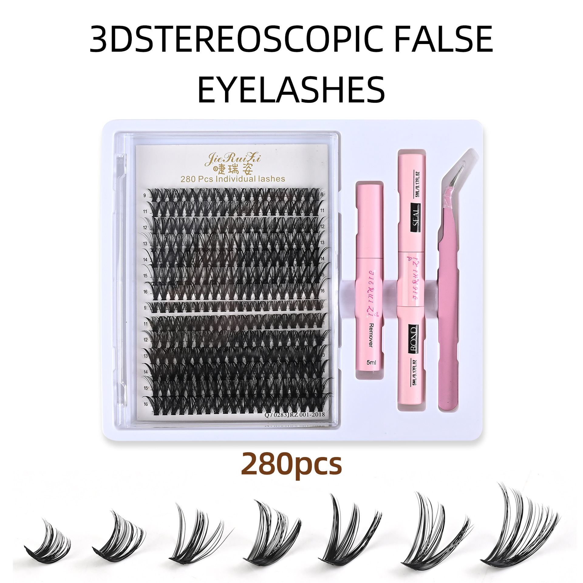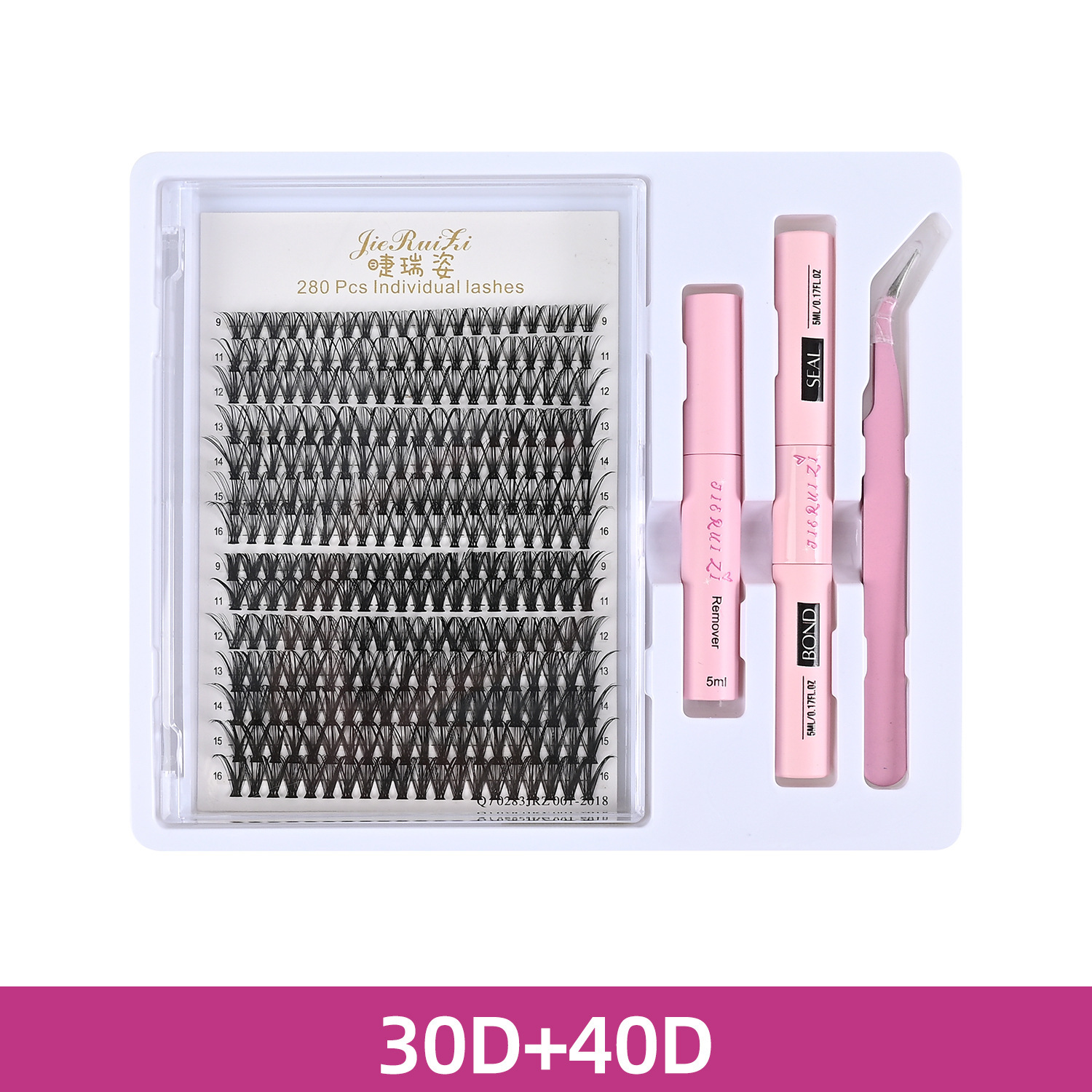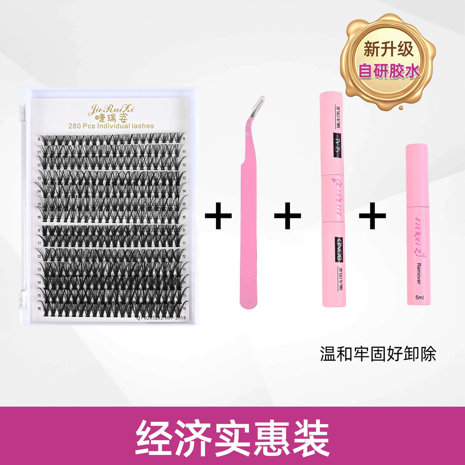跨境热销朵毛分段假睫毛热熔混装朵毛套装双头胶大容量单簇假睫毛