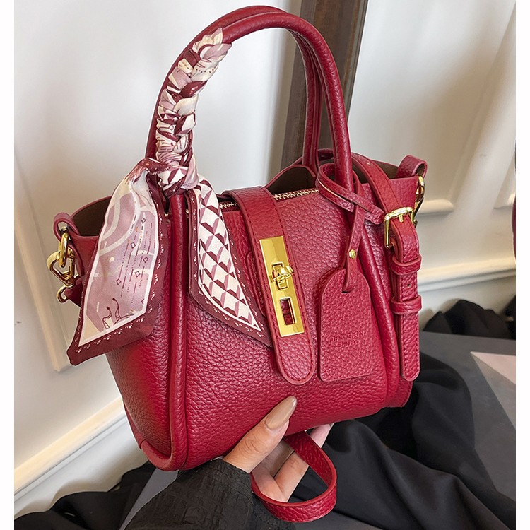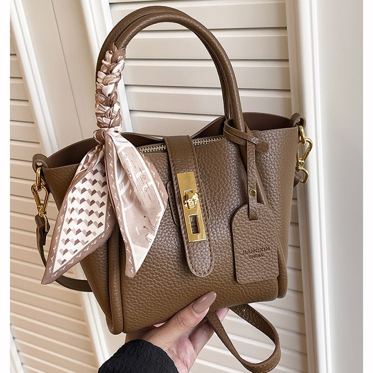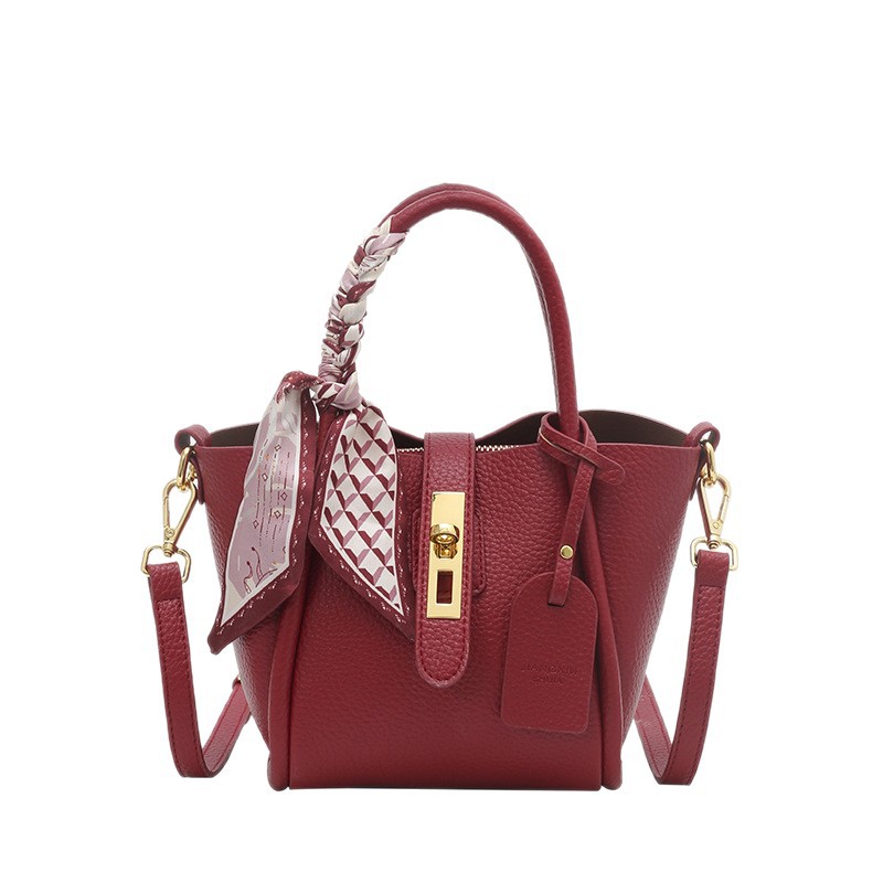 跨境女包批发2025新款菜篮子女包水桶包手提荔枝纹女包丝巾斜挎包