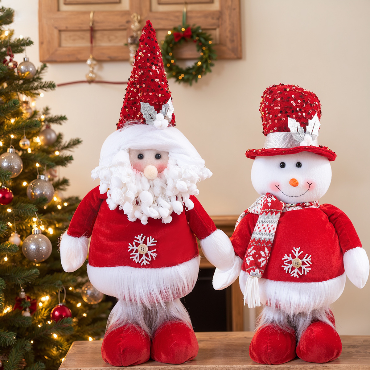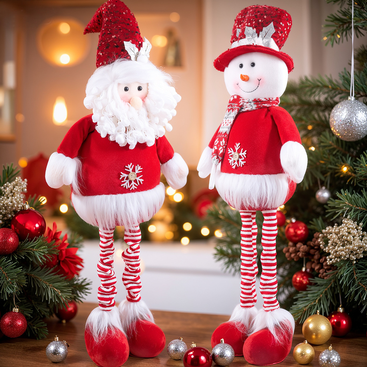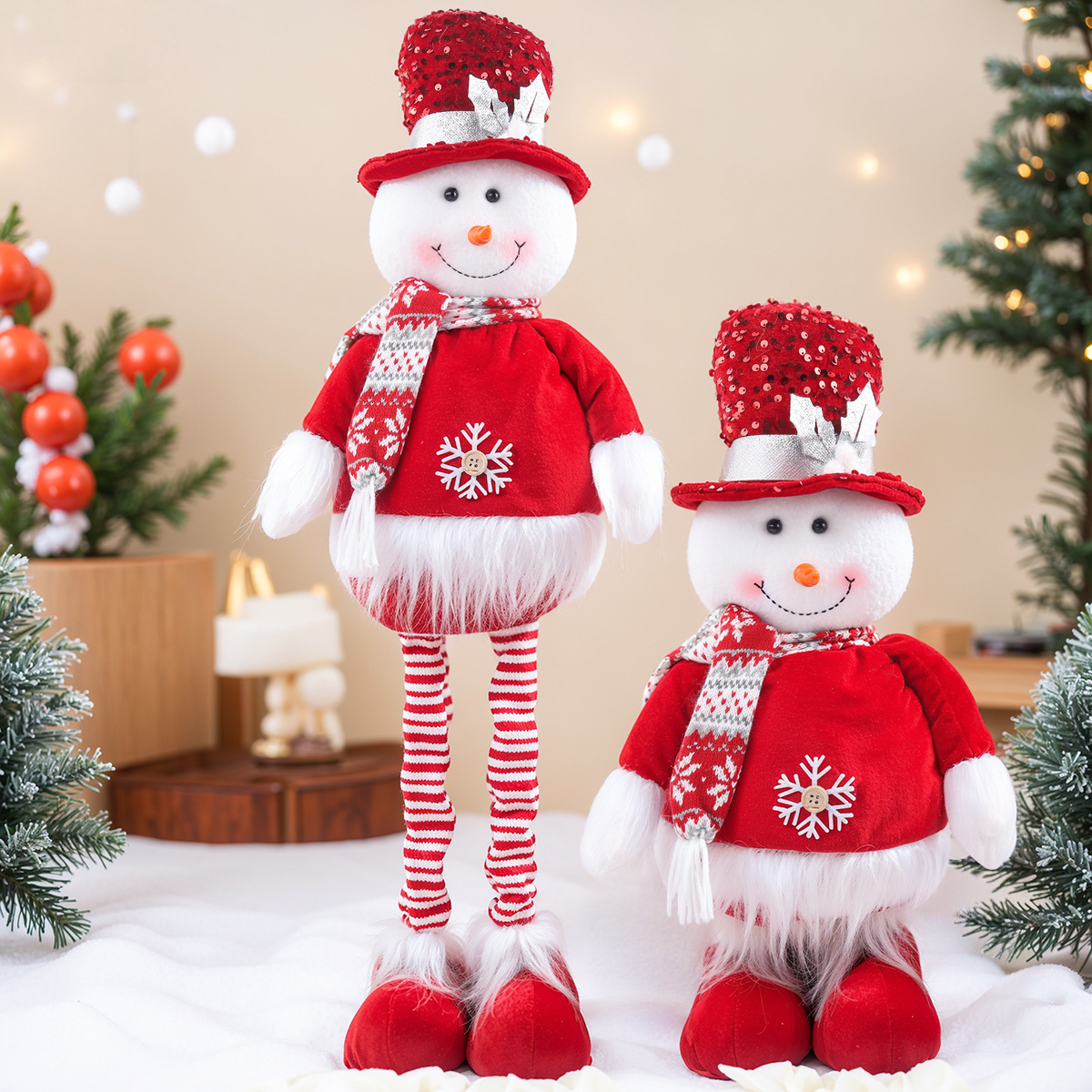 2026跨境新品圣诞伸缩针织红色系列公仔橱窗道具装饰配饰搭配用品
