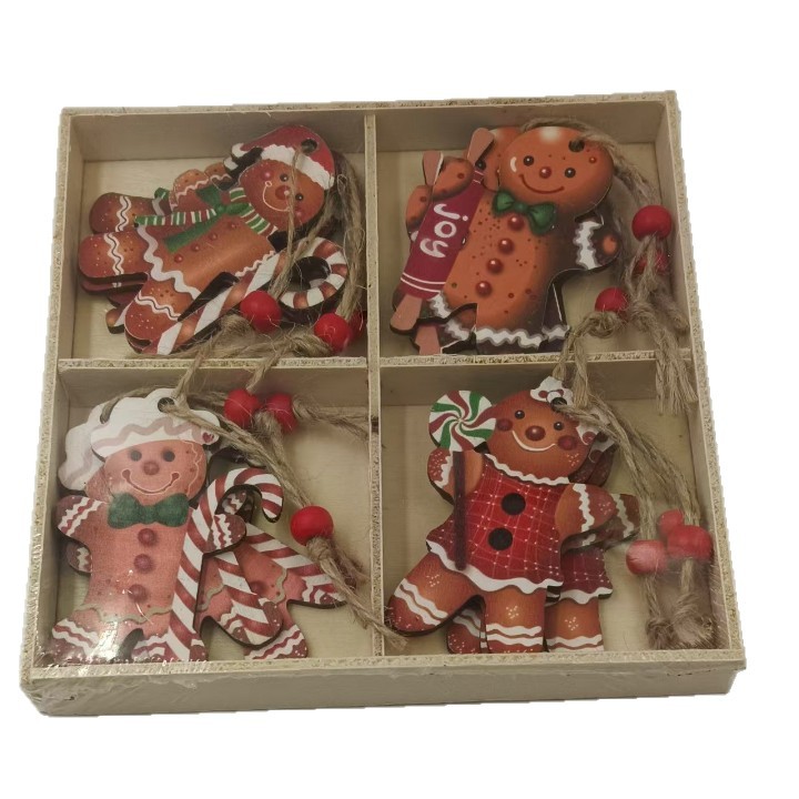 新款圣诞节装饰品四宫格12PCS木质姜饼人情侣公仔挂件 圣诞树挂饰