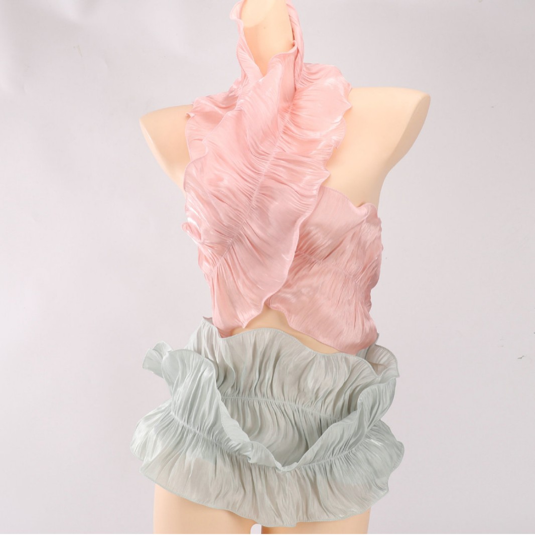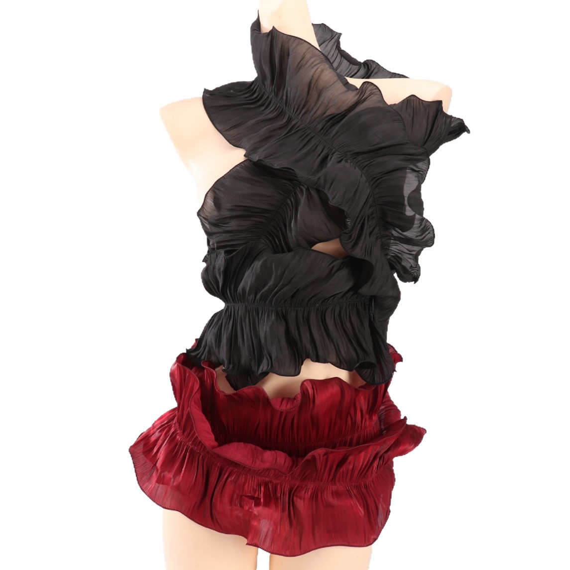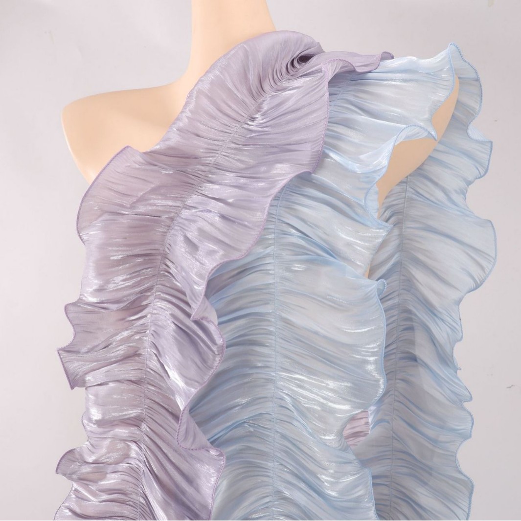 木耳边水光缎柔软肌理立体花边大波浪纱裙面料网纱布料舞台服