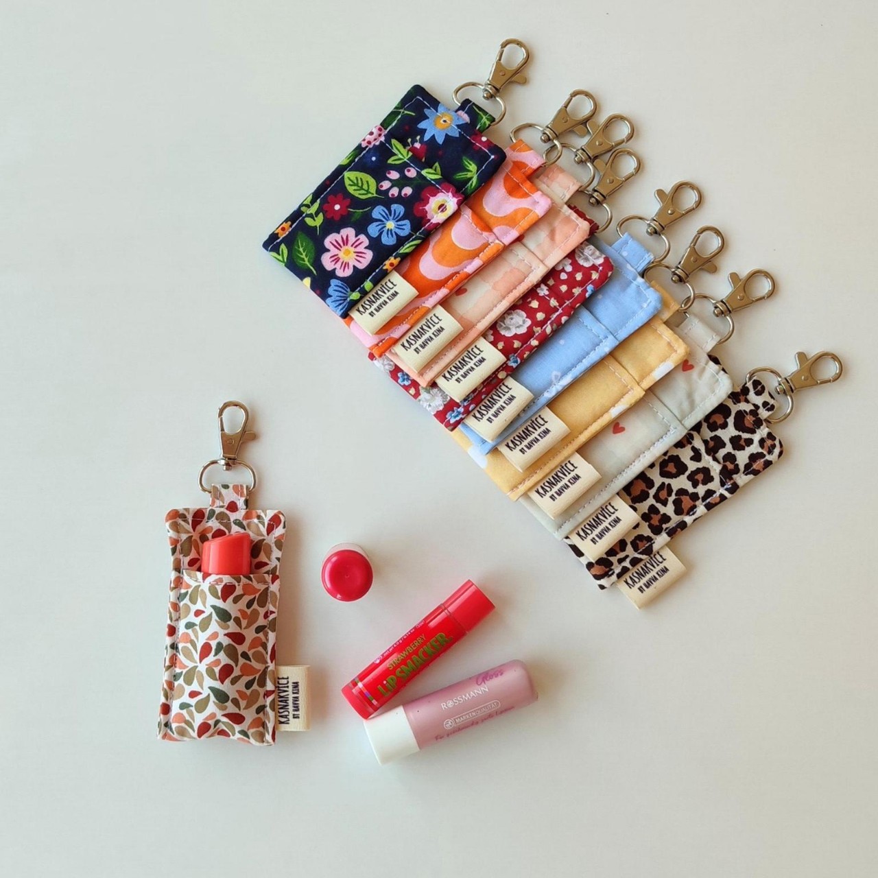 跨境热卖ins风布艺时尚口红套小碎花印花唇膏套腰挂钥匙扣口红套