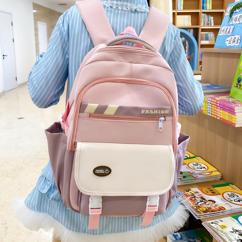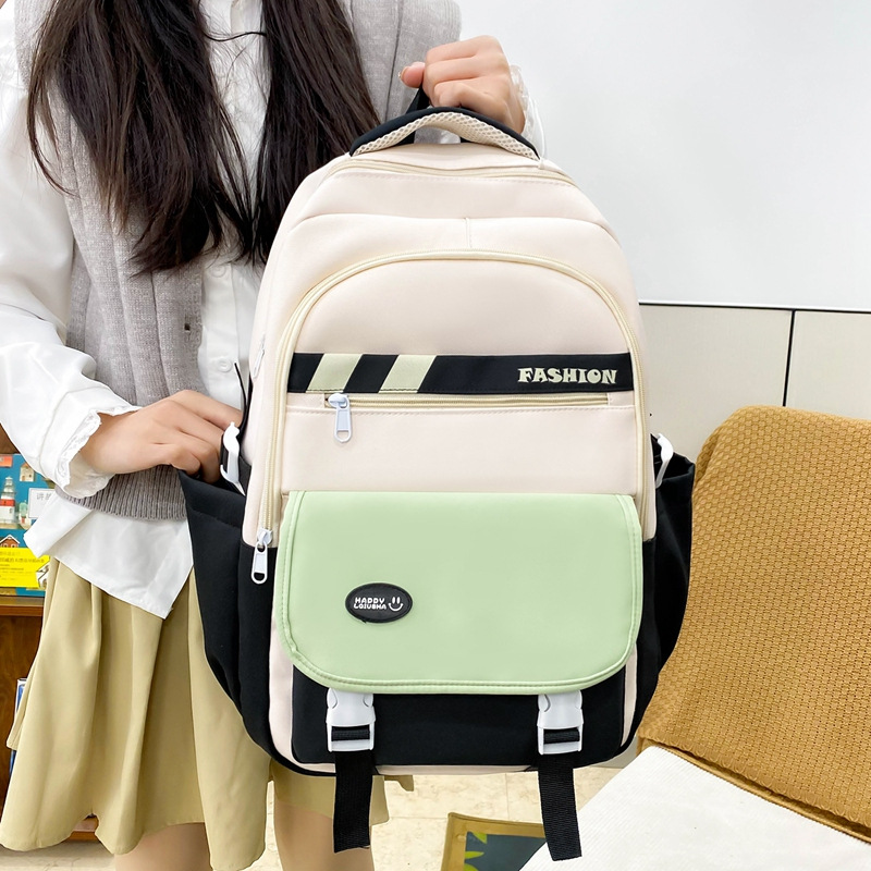 2025新款简约百搭休闲包撞色初高中学生书包大容量校园双肩包