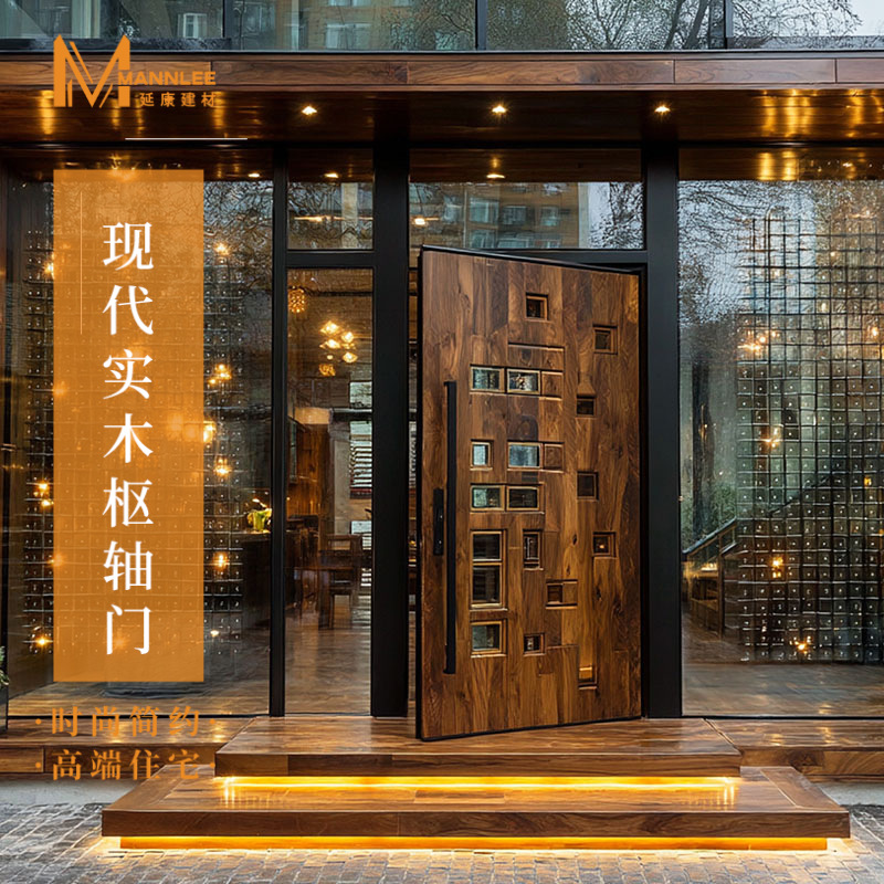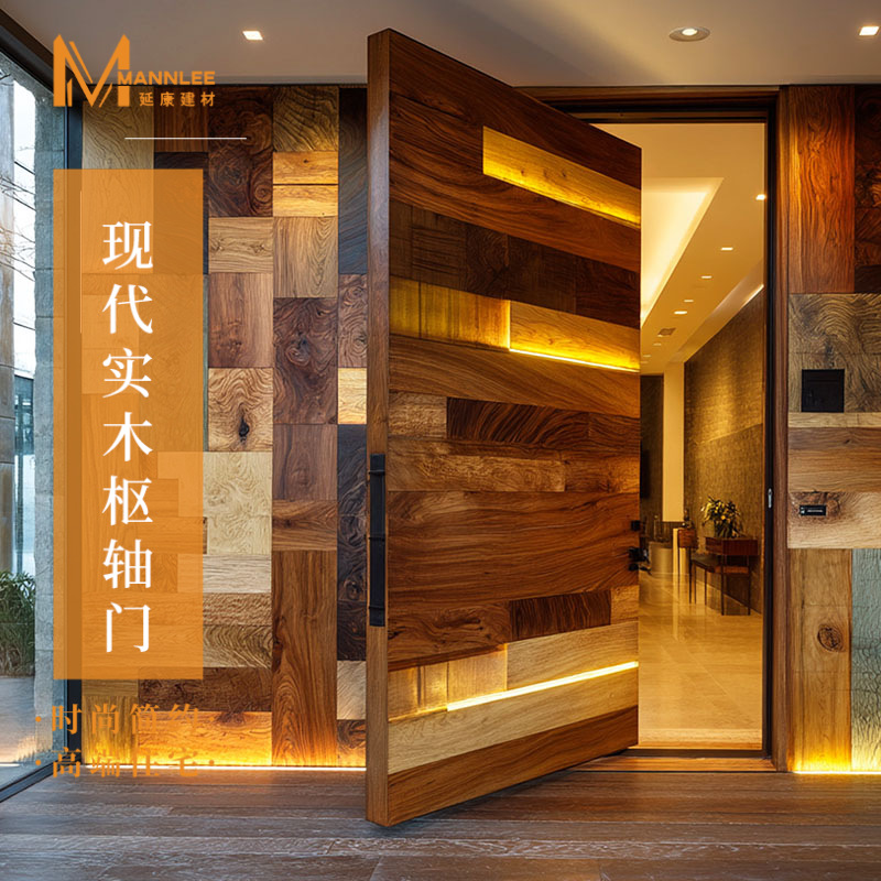 欧式跨境胡桃木中轴门原木纹别墅入户大门田园现代风格转轴中轴门