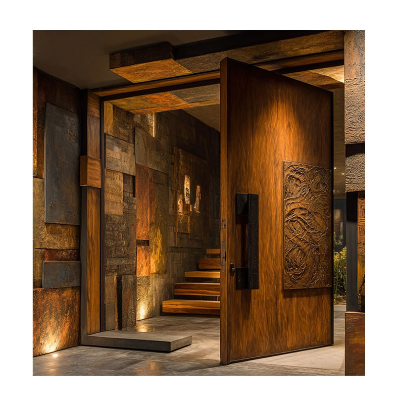 现代化实木枢轴门跨境专供别墅入户大门自建房防盗欧式转轴偏轴门