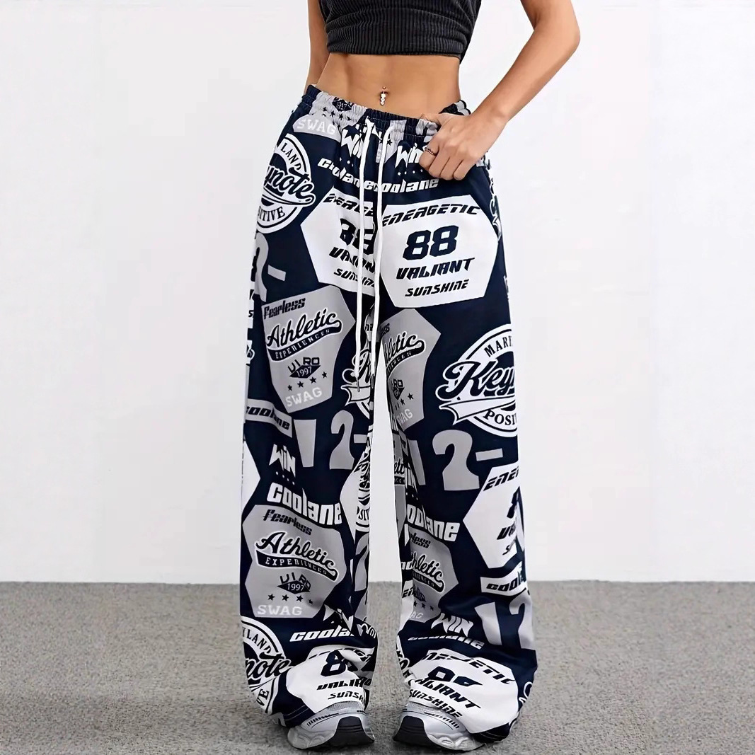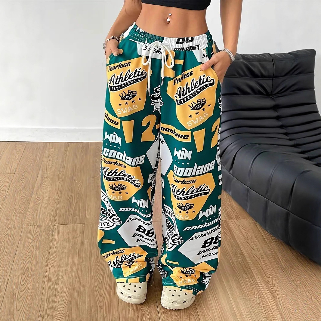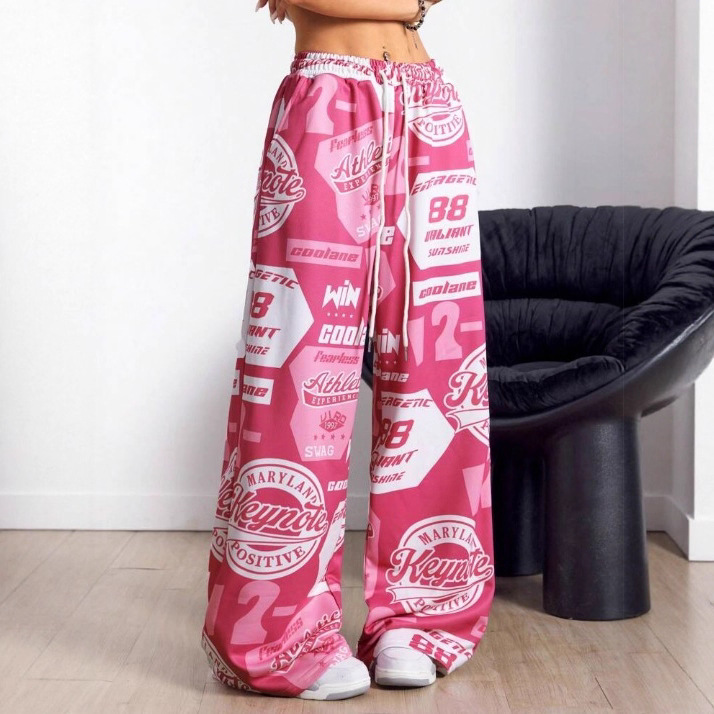 2025跨境欧美秋冬女装新款辣妹风口袋街头印花宽松休闲长裤3D印花