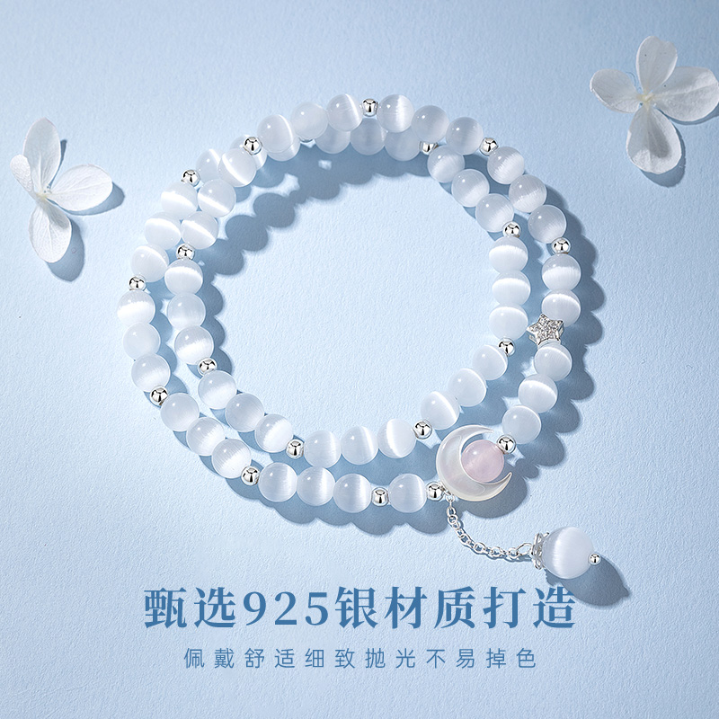 s925银月光猫眼石手串女生小众精致轻奢高级感双圈叠戴新中式手链