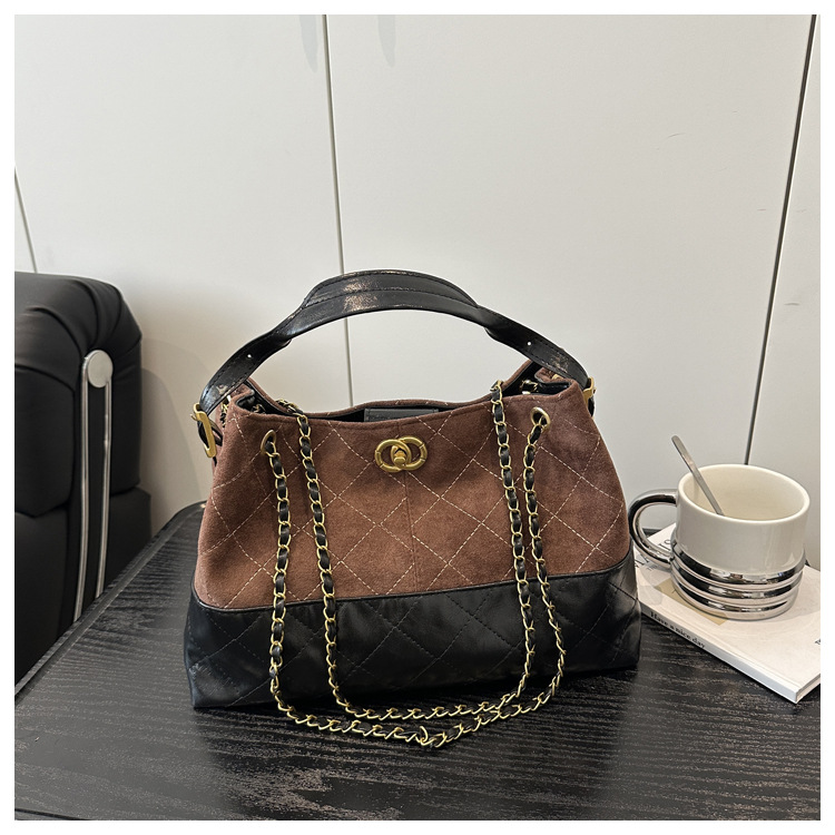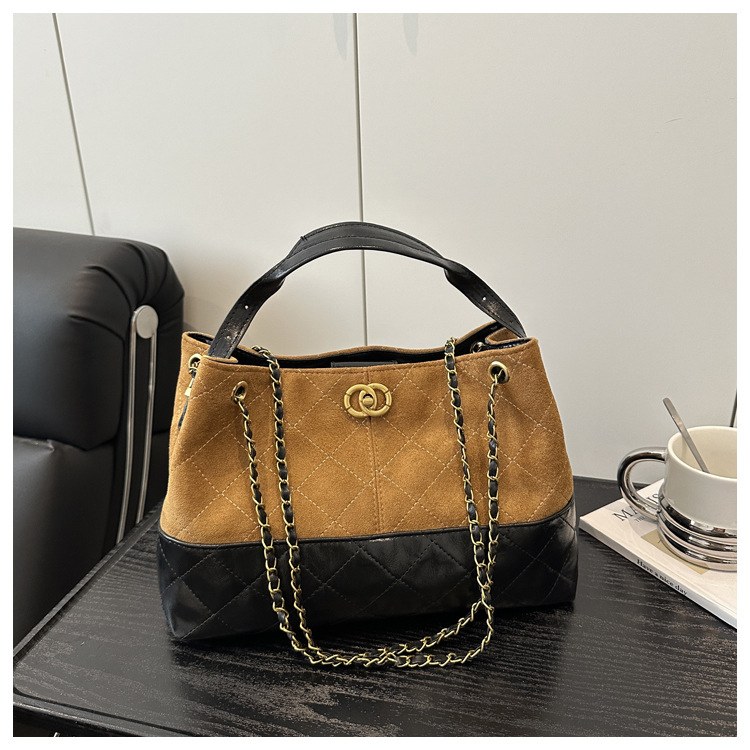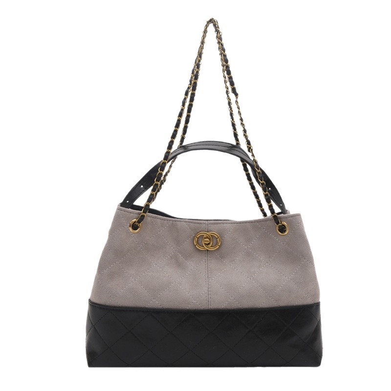 高质感2025春季新款百搭托特女小香风菱格链条包单肩斜挎手提大包