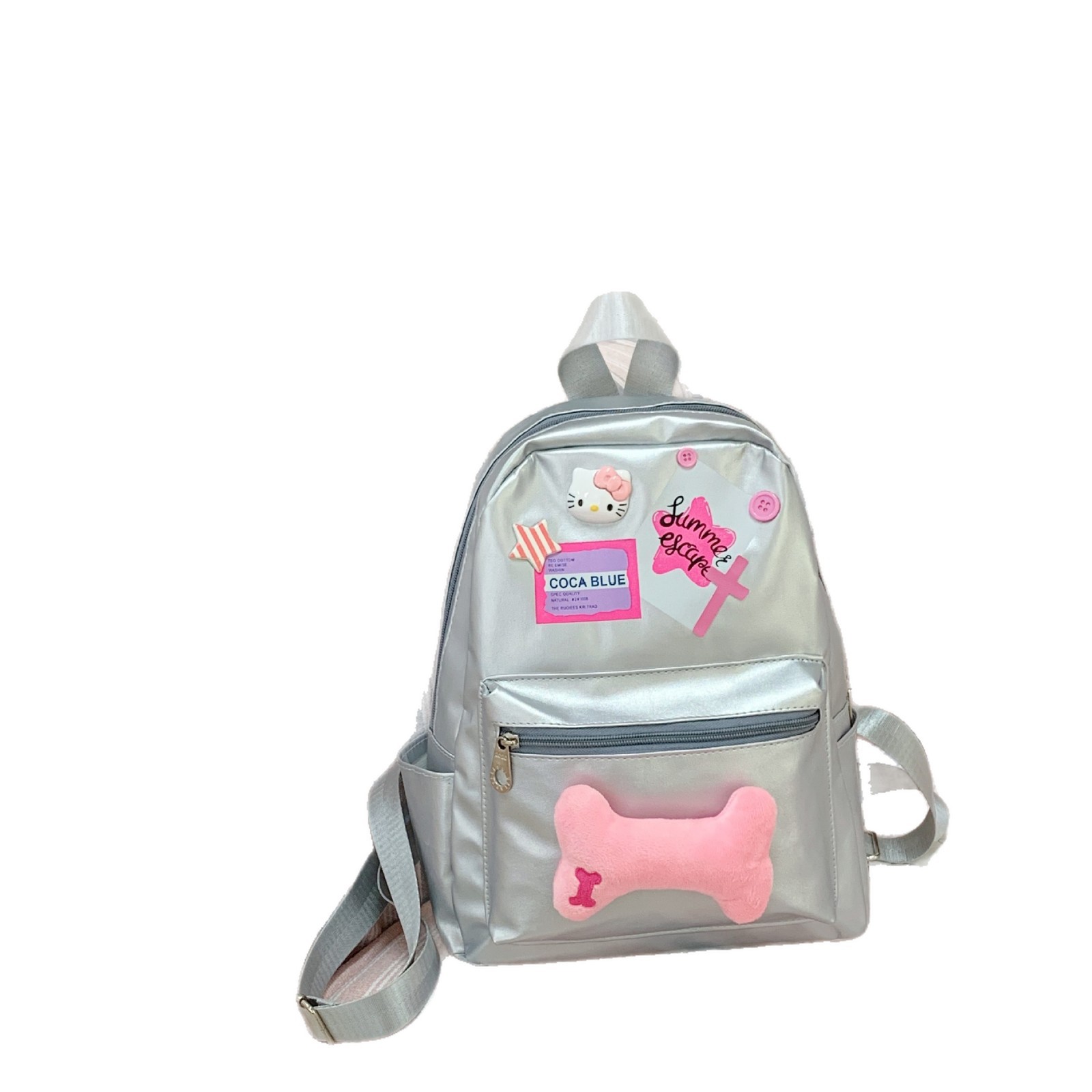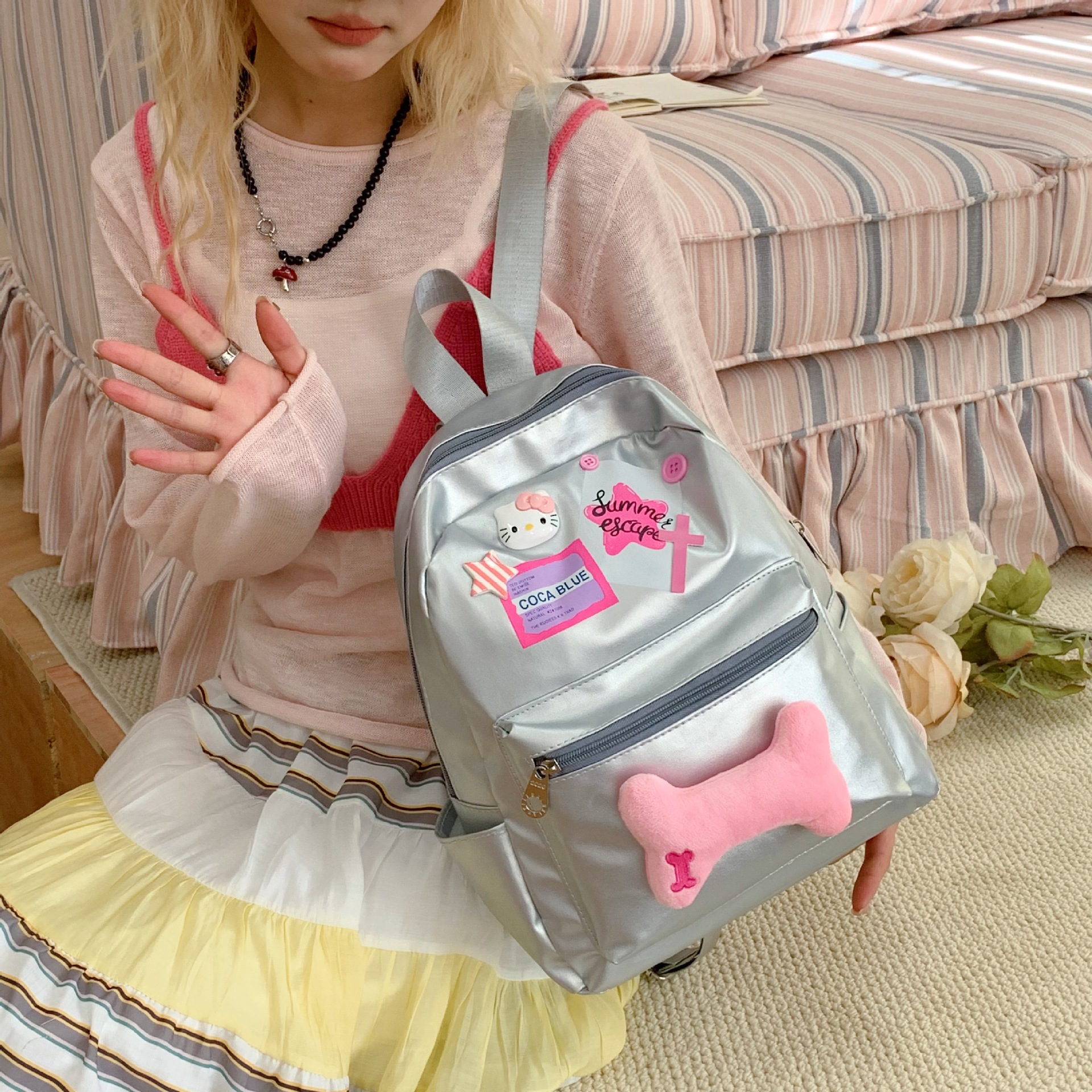 万人收藏新款原创甜辣妹银色pu背包粉色星星骨头双肩包