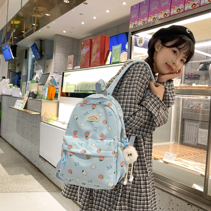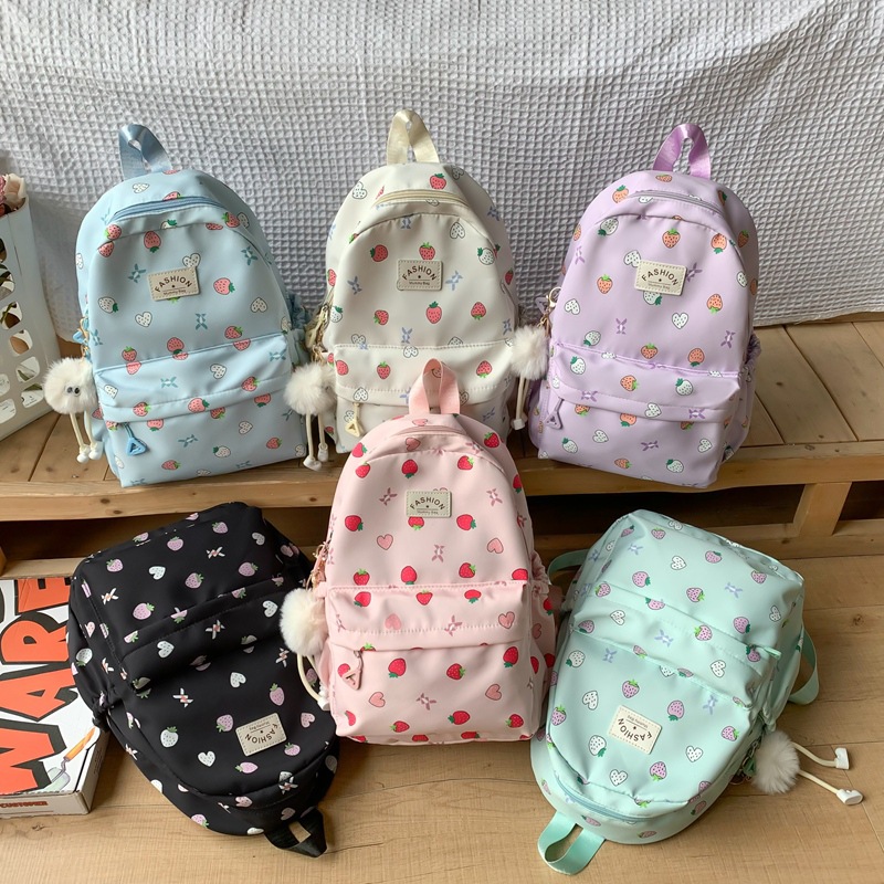 跨境草莓印花新款韩版女士休闲百搭大容量甜美高颜值双肩背
