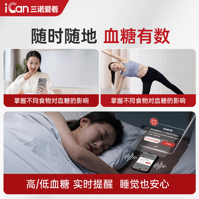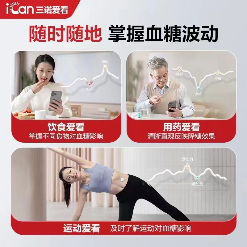 三诺爱看动态血糖仪血糖检测免扎手指老人孕妇家庭使监测智能监测
