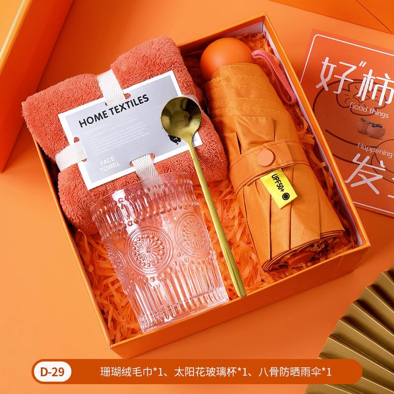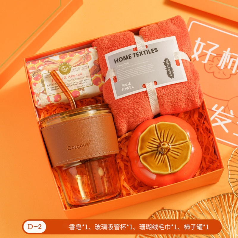 颜色 | 8橙_毛巾+柿子+花茶+笔记本 | | 颜色 | 9橙_杯子+毛巾+精油皂 |