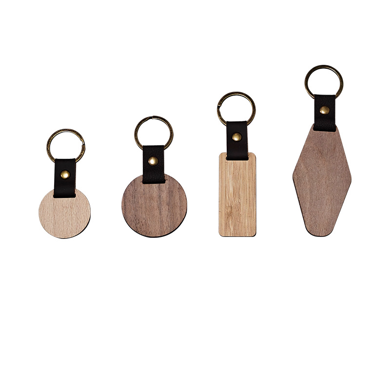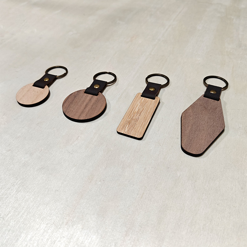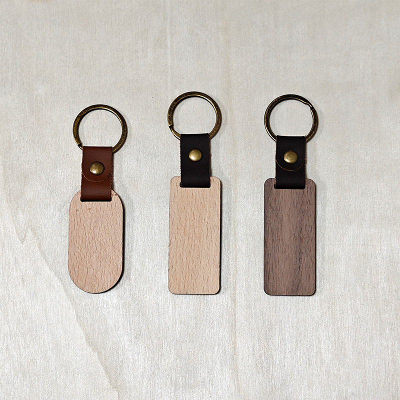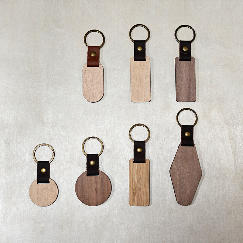 实木切割胡桃木钥匙扣镭射激光挂件PU皮木质钥匙链