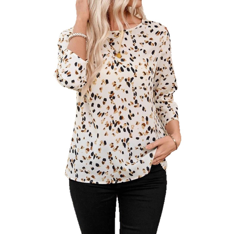 欧美外贸春秋新款亚马逊独立站热售小碎花印花圆领七分袖宽松T恤