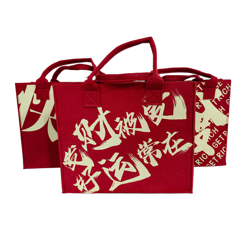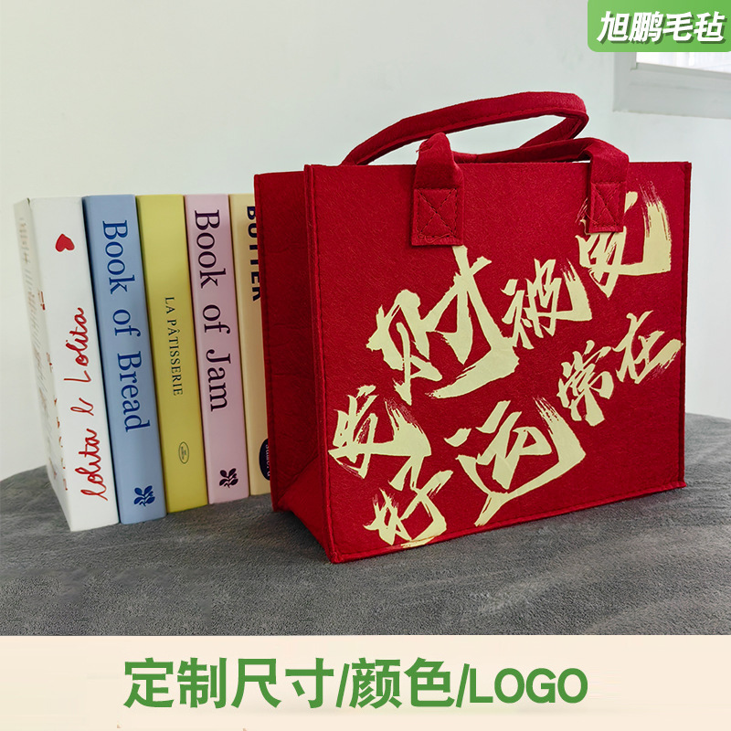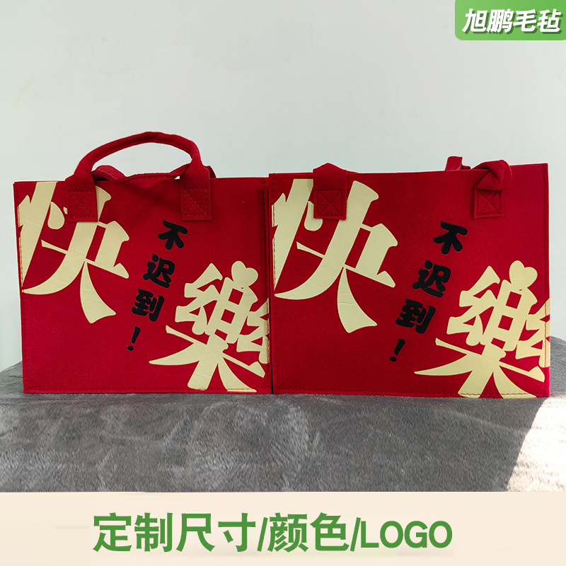 国潮风红色喜庆毛毡包手提袋生日宴婚礼伴手礼大容量回礼袋托特包