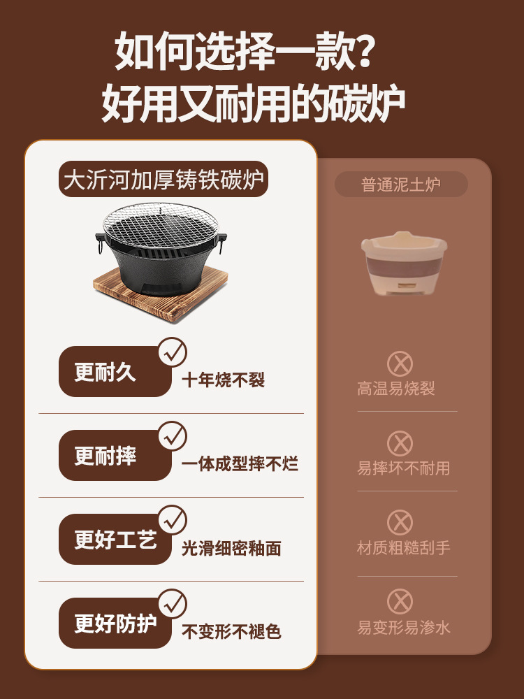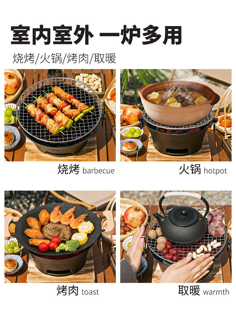 颜色 | 特厚32cm铸铁围炉+炭夹 | | 颜色 | [带烤网]27cm炉+烤网+木底座 |