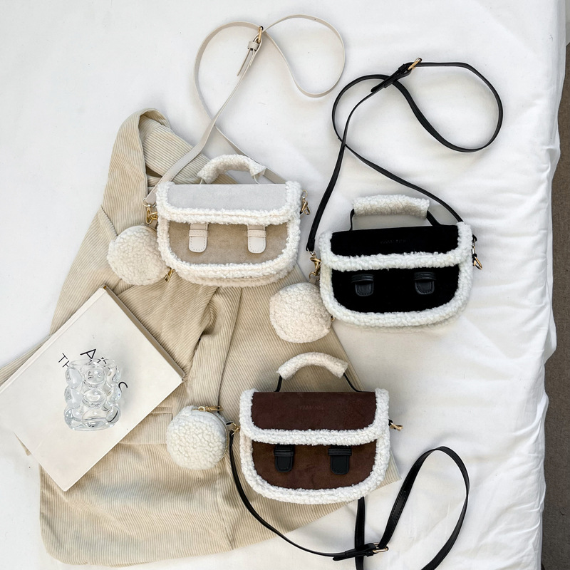 毛绒单肩手提马鞍包绒包包女包秋冬新款小众磨砂手提包复古斜挎包