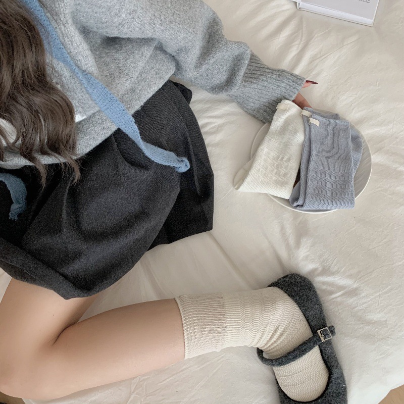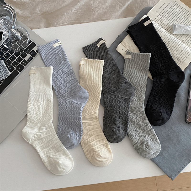 秋季新品女袜日系纯色布标egg中筒袜双针松口ins学院风无骨堆堆袜