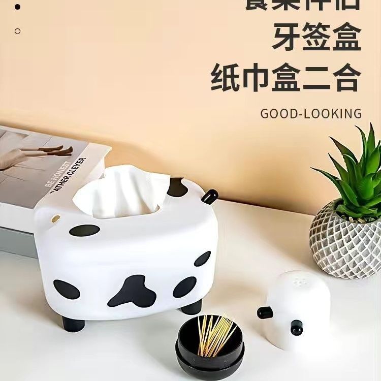 客厅二合一牙签DIY奶牛纸巾盒ins风客厅学生宿舍抽纸盒创意多功能