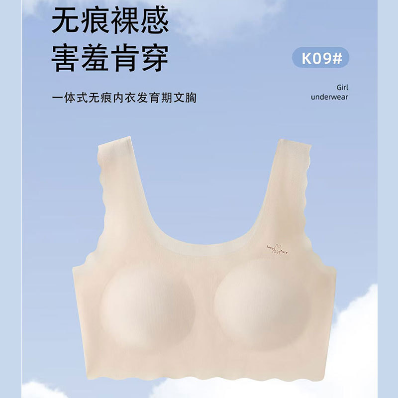夏季少女运动固定杯内衣抹胸小女孩发育期小背心薄款无痕冰丝文胸