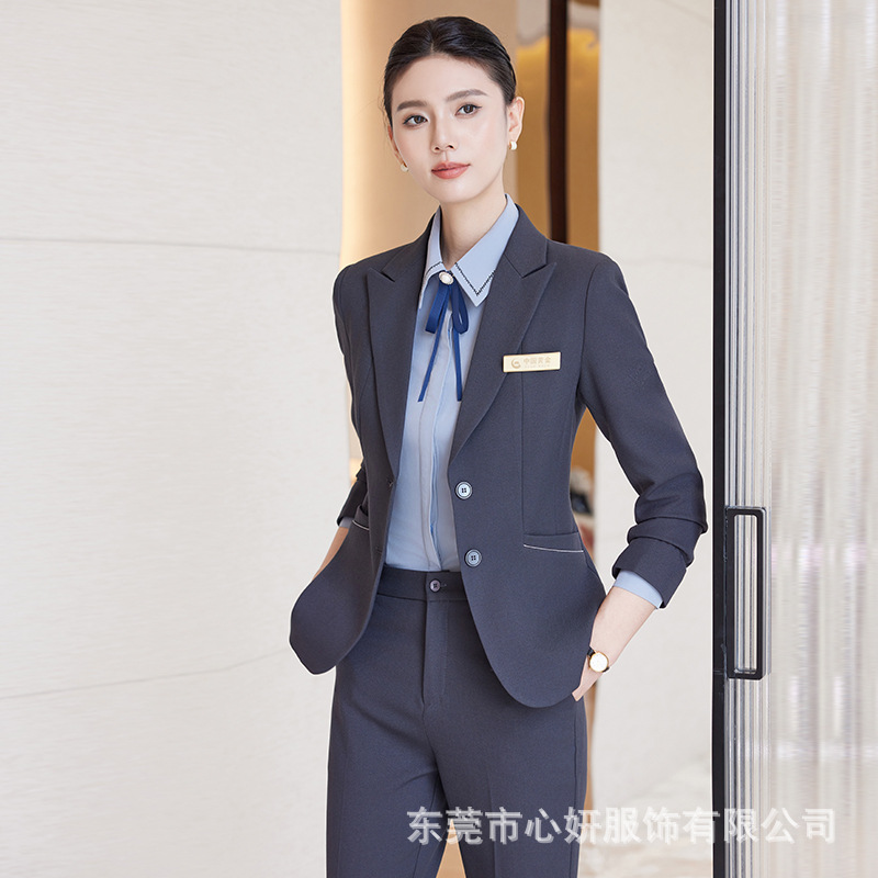 | 颜色 | 蓝色西装+裙子+白衬衫 | 颜色 | 灰色西装+裤子+灰衬衫 |