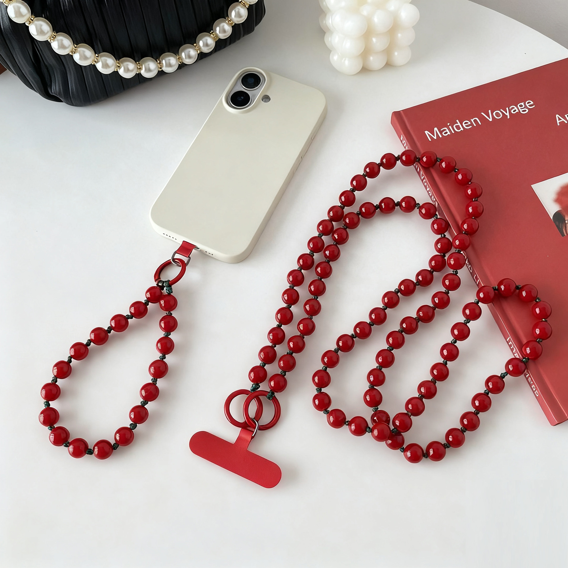 红珠绿线【斜挎链】+大红小布片