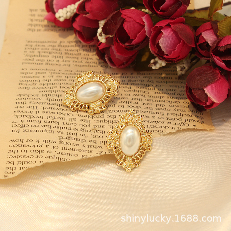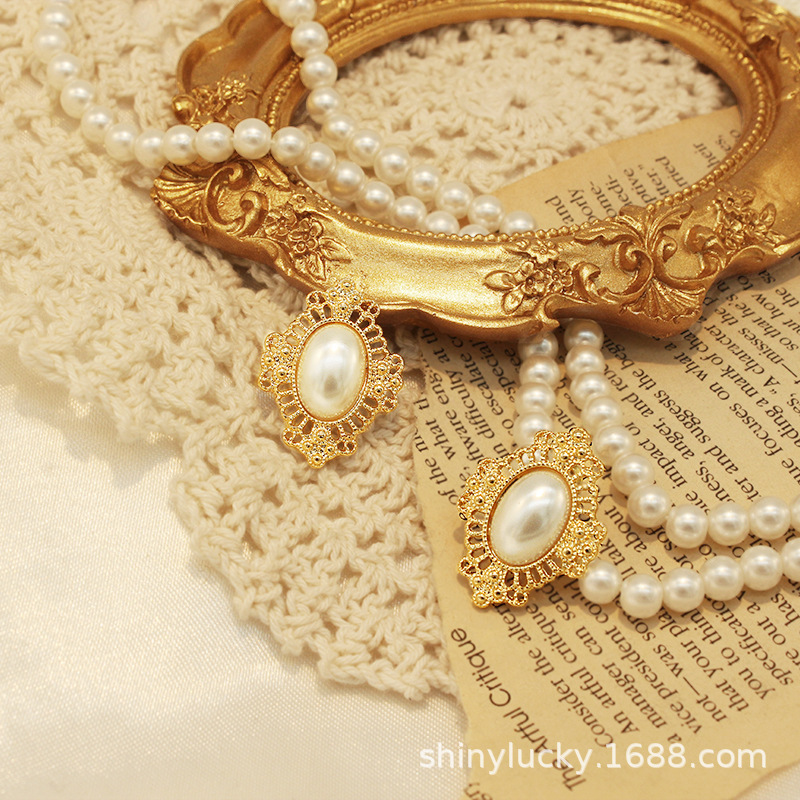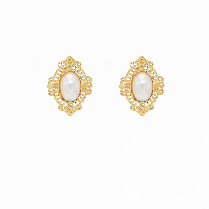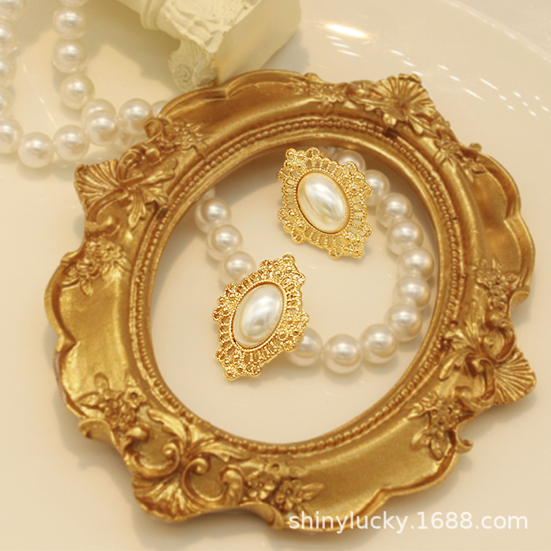 s925银针珍珠耳钉欧美宫廷风复古优雅感耳环气质简约耳环耳饰女