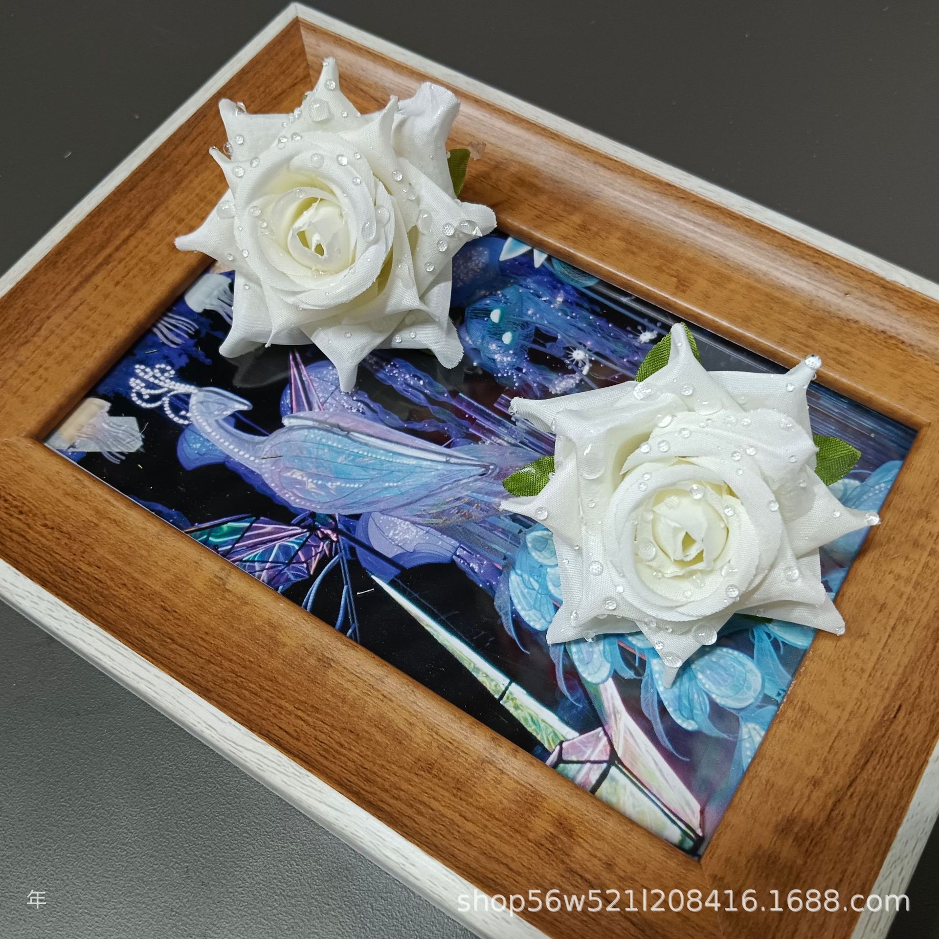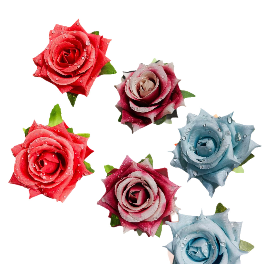 新款露珠水滴卷边玫瑰花diy头饰发夹发箍胸花仿真花婚礼婚庆装饰