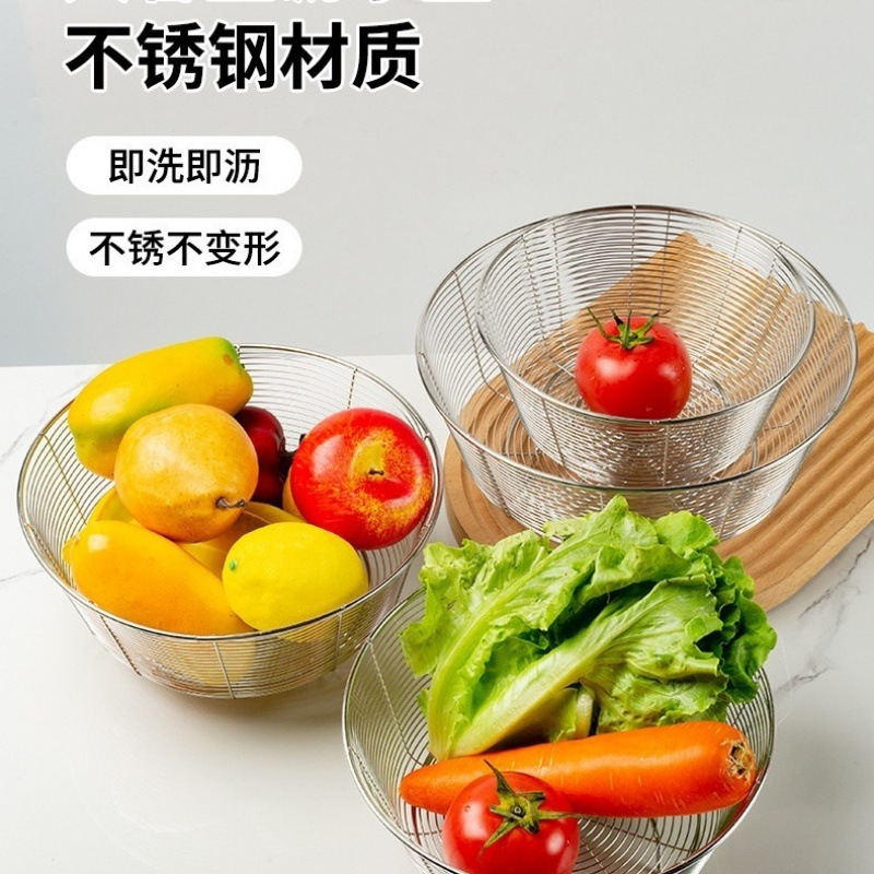 夏季304不锈钢无磁水果篮沥水圆形实厚客厅专洗菜包邮清仓食品级