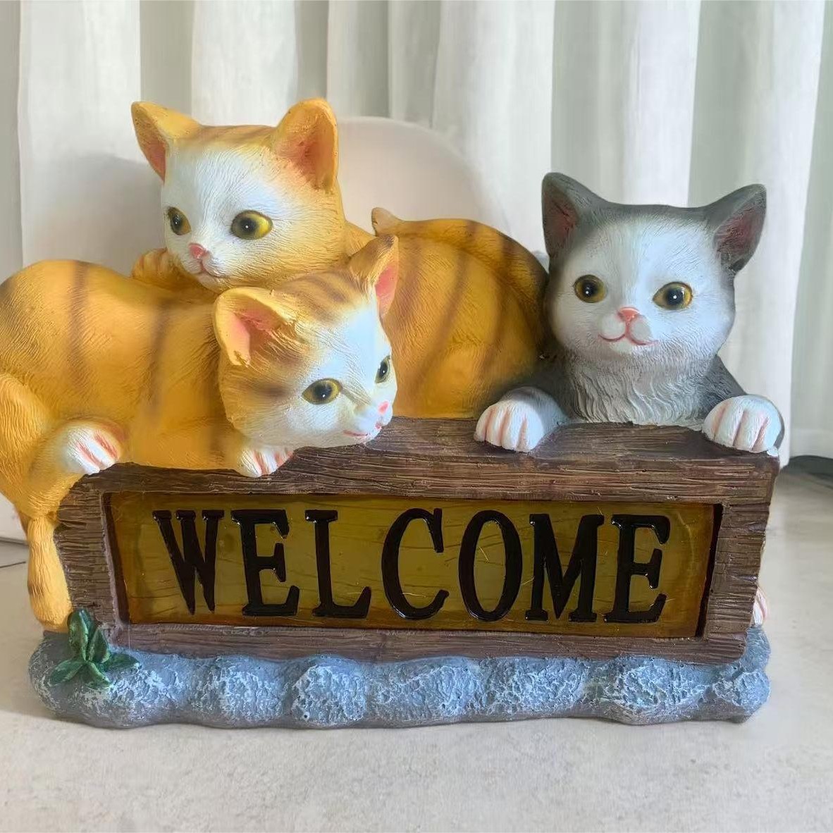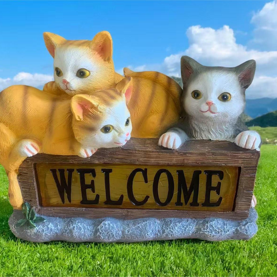太阳能三只猫咪欢迎回家花园庭院露台露营庭院花园led灯太阳能灯