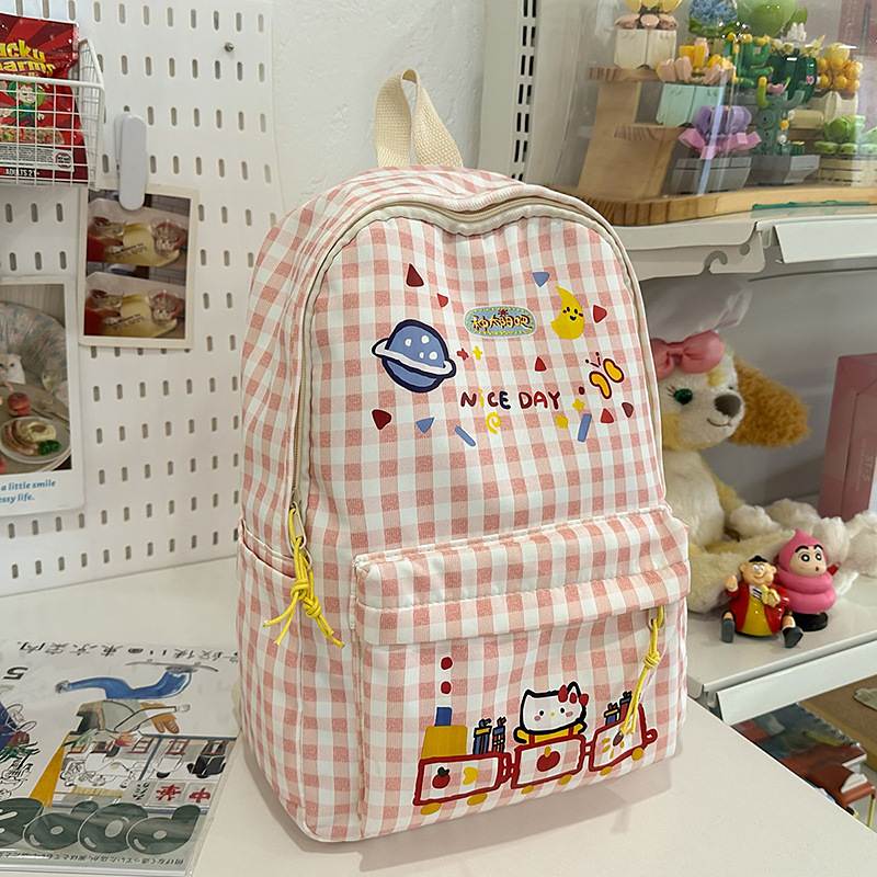 新款粉色格子日系双肩包小众可爱甜美大容量高中生初中生女生双肩