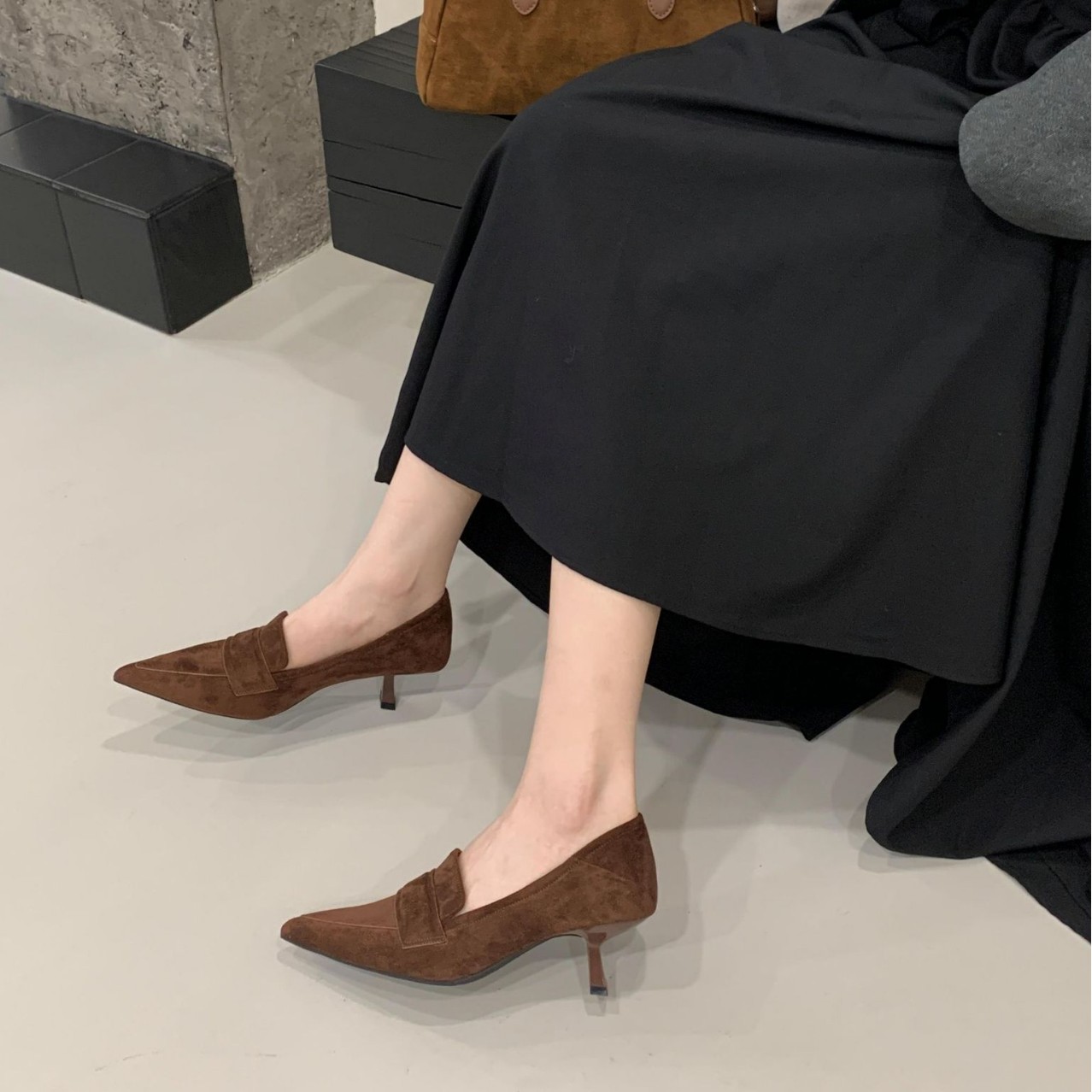 法式深口鞋2025秋冬季新款时尚百搭深口女单鞋尖头显瘦绒面高跟鞋