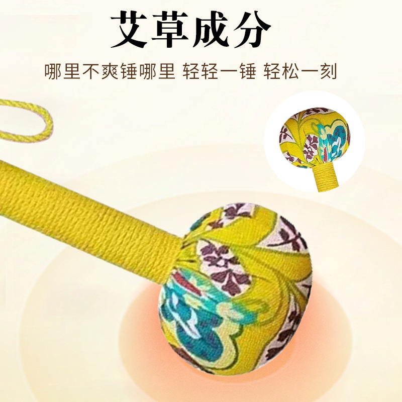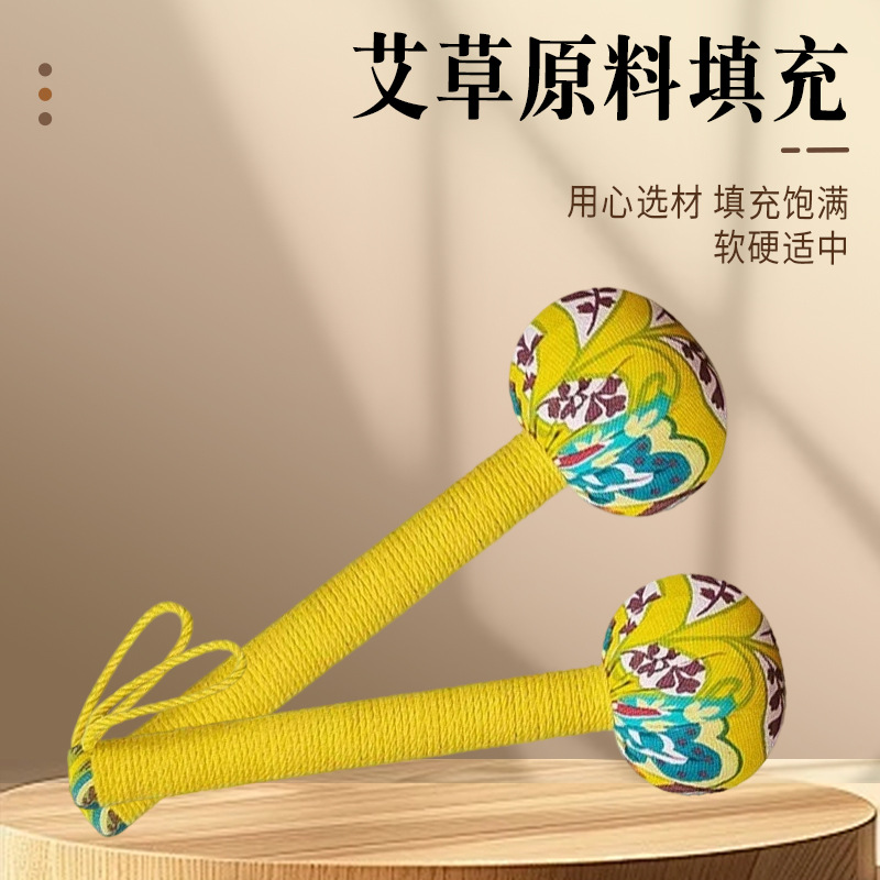 厂家供应31cm艾草按揉锤黄色加长款肩颈膝盖手持经络按摩锤养生锤