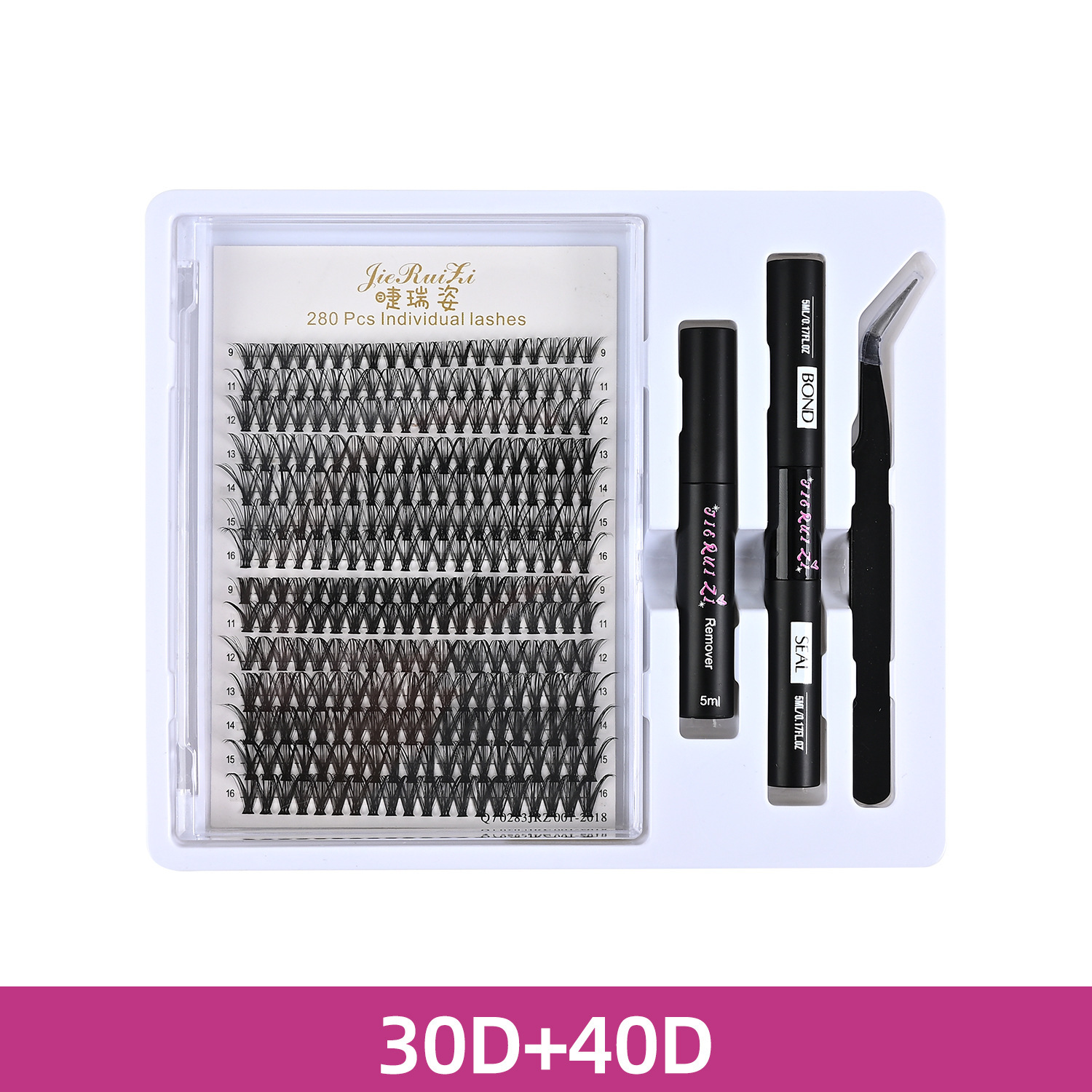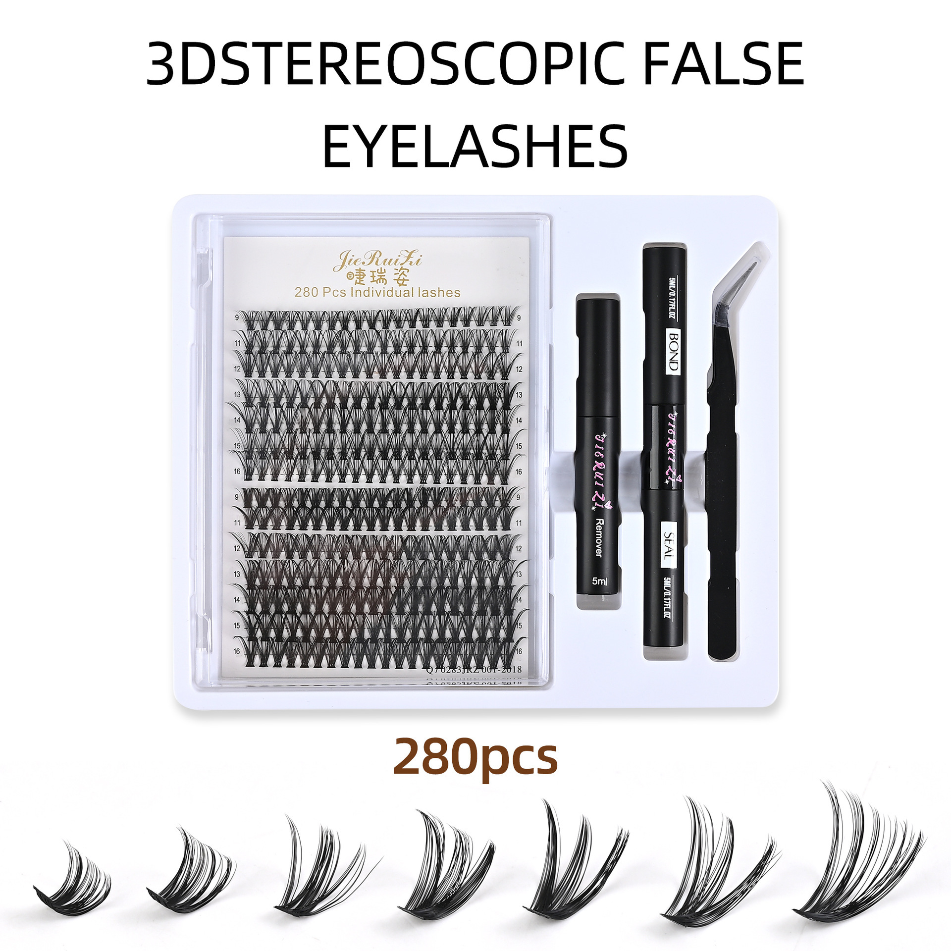 跨境睫毛夹自嫁接分段热熔混装朵毛套装纤长交叉浓密假睫毛胶水